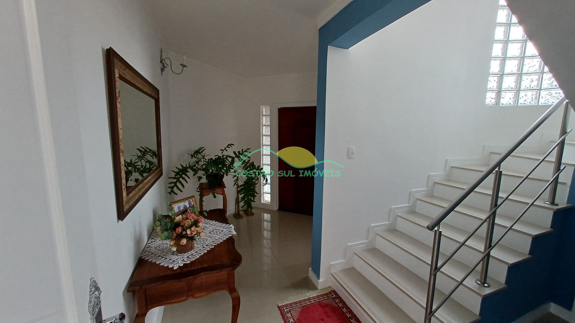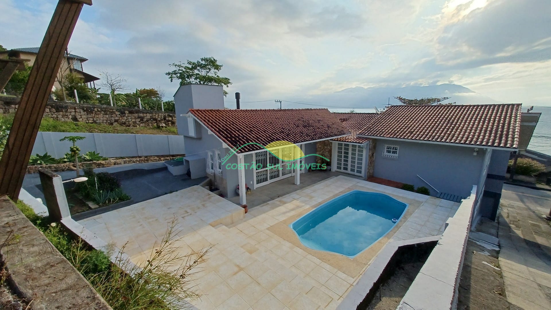 A casa possui Hall de entrada com sapateira sob a escada, sala com dois ambientes (estar e TV), sala de jantar com acesso à piscina, amplo banheiro social, três quartos, sendo uma suíte climatizada, com sacada e vista para o mar, ampla cozinha, aconchegante espaço Gourmet com acesso à piscina, composta por churrasqueira a carvão, balcão de granito e pia, banheiro e lavanderia.