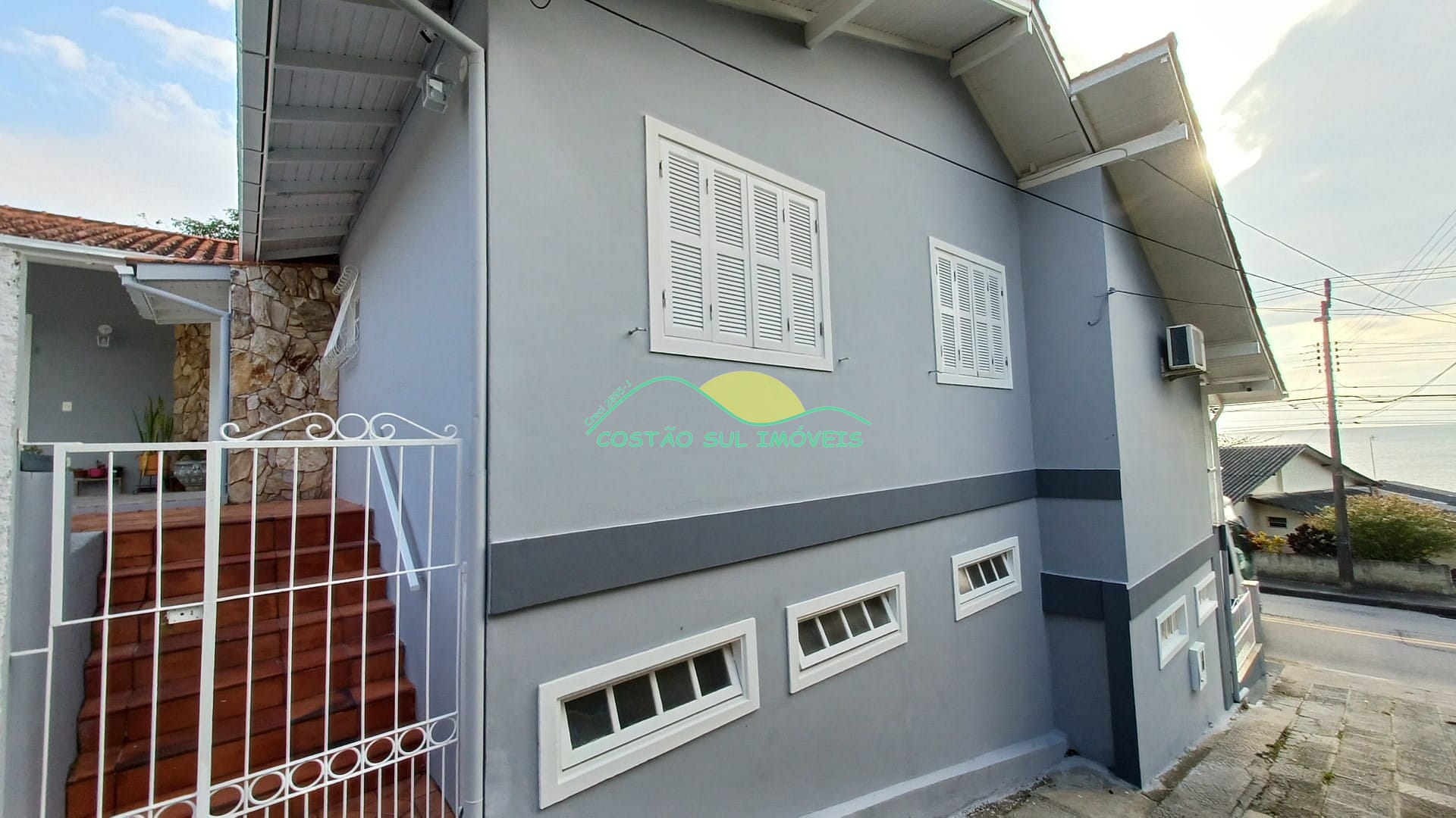 Ampla e aconchegante casa de alvenaria de dois pavimentos, com aproximadamente 260m², vista para o mar, distante 30 metros da praia, com desnível de ambientes e conceito moderno, edificada em um terreno de 498,45m² (Frente: 20,23m; Fundos: 17,74m; LE: 30,52m e LD em três lances de 8,20m, 5,85m e 13,25m, respectivamente), em declive para a Rodovia e com zoneamento ARM-2.5 (Comercial e Residencial).