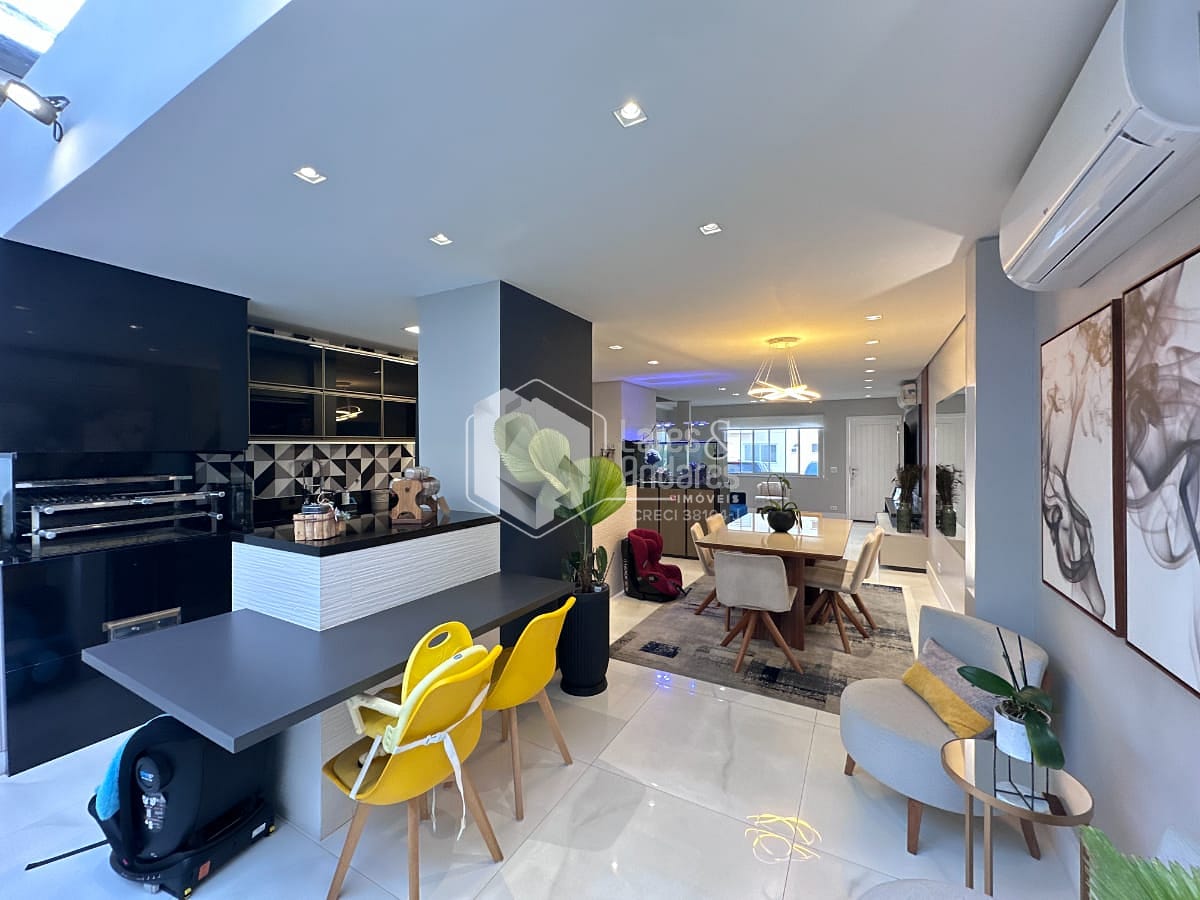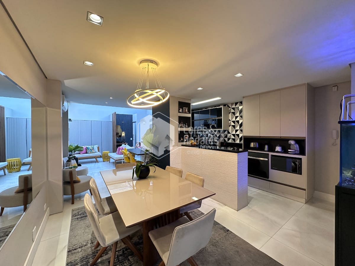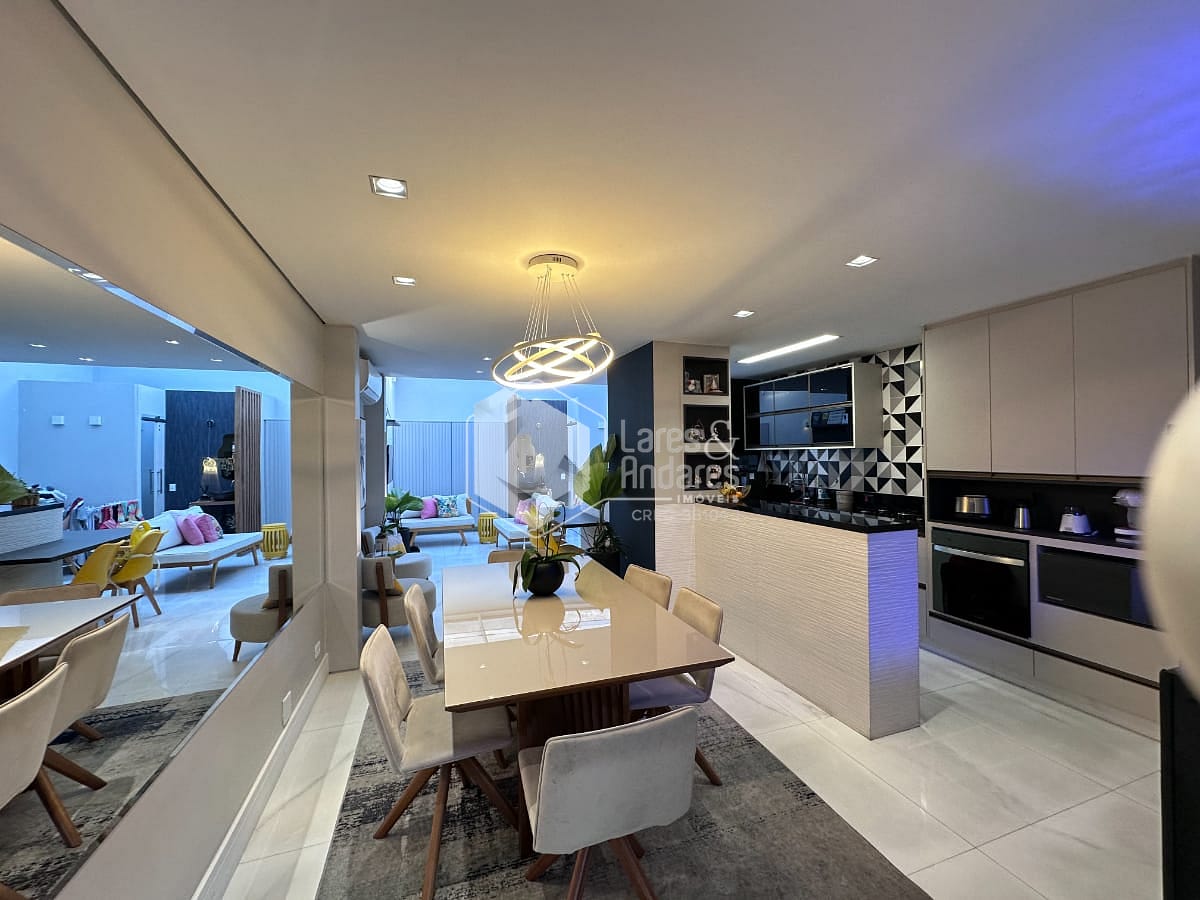 Cozinha integrada à sala de estar e jantar, promovendo um ambiente amplo, iluminado e perfeito para receber amigos e familiares.