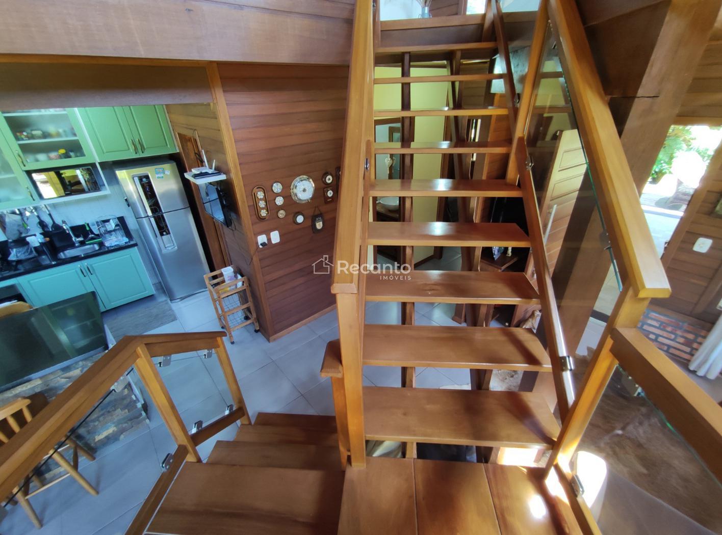 Mezanino: A casa tem um mezanino com sacada, que pode ser um ótimo lugar para relaxar ou usar como espaço adicional de convivência.