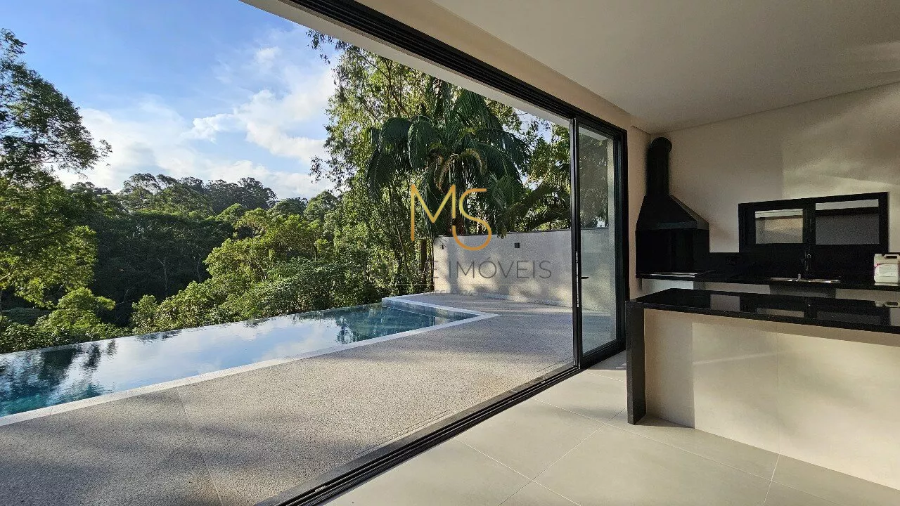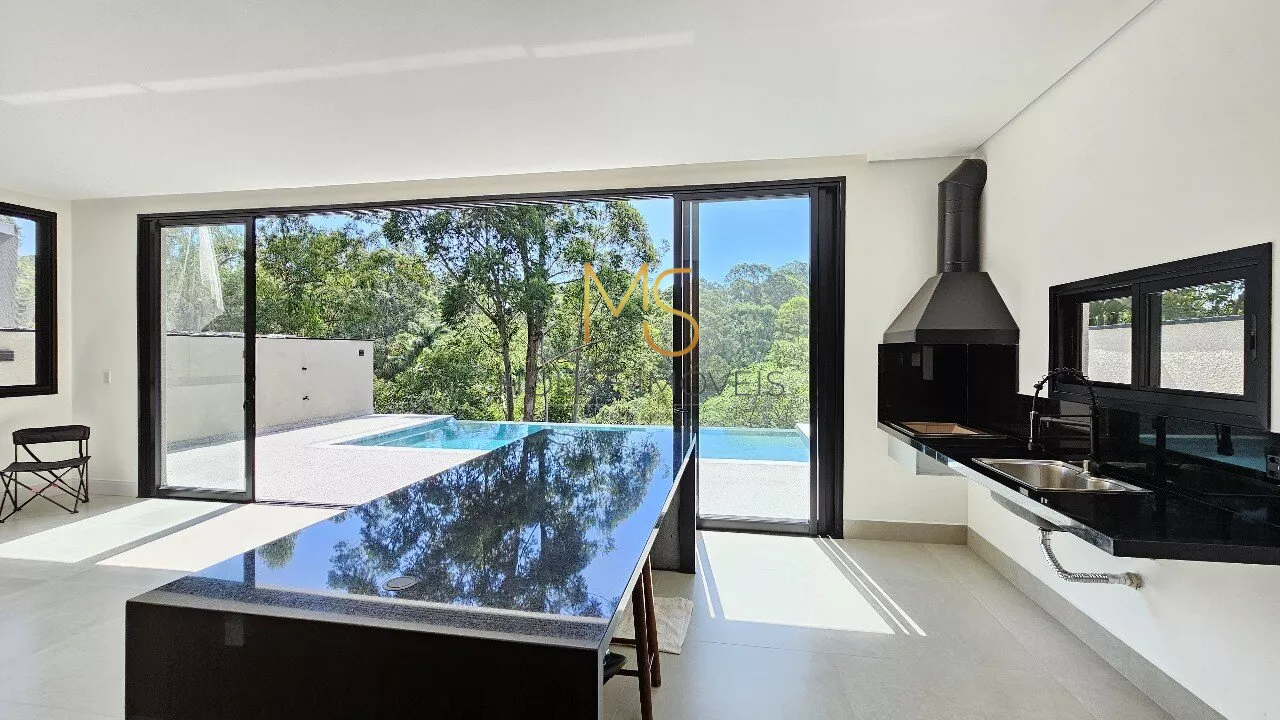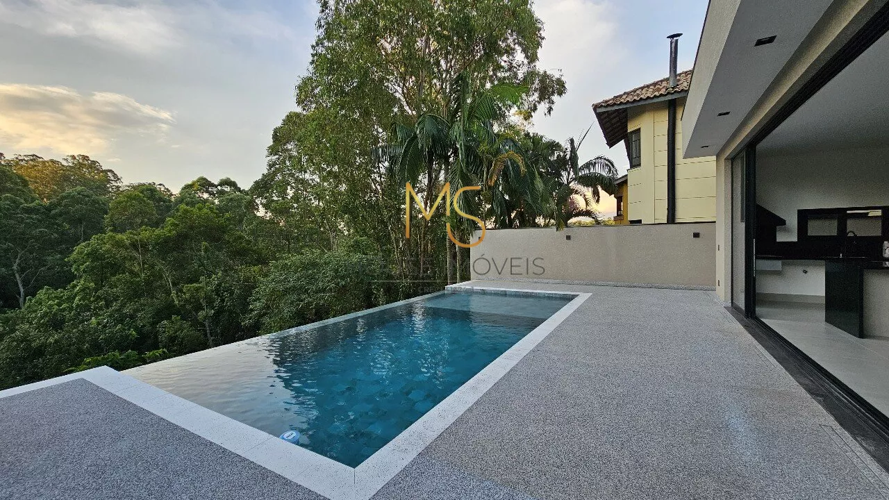 Casa Nova para Venda de Alto Padrão Condomínio São Paulo 2, Granja Viana, Cotia, SP.Encantadora Residência com Conforto e ModernidadeEsta deslumbrante casa oferece 3 suítes espaçosas e 4 vagas de garagem, perfeita para quem valoriza conforto e praticidade. A piscina com prainha e borda infinita proporciona uma vista deslumbrante para a área verde, garantindo momentos de relaxamento e lazer. A propriedade está preparada para aquecimento, oferecendo conforto térmico durante todo o ano.Equipada com automação e infraestrutura completa, a residência conta com preparação para ar condicionado, carregador para carro elétrico, energia fotovoltaica e aquecimento solar para piscina. Além disso, possui sistema de coleta de água pluvial para cisterna, promovendo sustentabilidade e economia.A cozinha integrada ao espaço gourmet é um convite para momentos gastronômicos únicos, completa com churrasqueira a carvão e ponto de gás dedicado caso prefira uma churrasqueira a gás.Com um terreno de 360m² e 265m² de área construída, incluindo um salão no subsolo da casa, a residência oferece um pé direito duplo na entrada e na sala. O living é composto por sala de TV com ponto para lareira a gás, além de sala de estar e jantar, criando um ambiente aconchegante e sofisticado.O escritório, com a possibilidade de ser transformado em uma suíte no térreo, é ideal para quem busca um ambiente de trabalho tranquilo e privativo. A casa também dispõe de lavabo, banheiro externo para apoio à piscina, área de serviço e despensa, proporcionando total funcionalidade e organização.Agende sua Visita