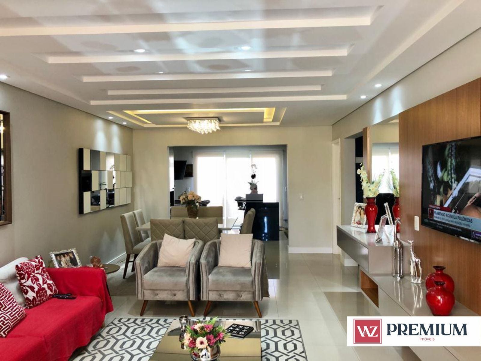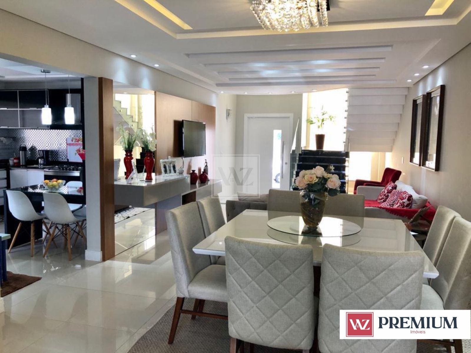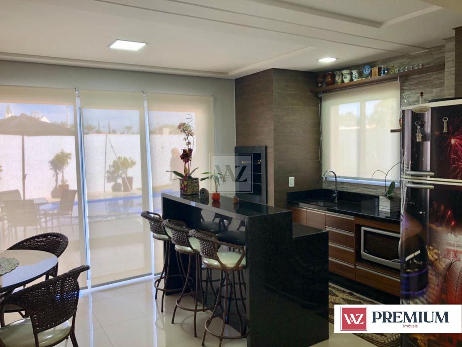 A residência possui uma fachada exuberante e imponente, com jardim e garagem para 3 carros. Possui 3 quartos (sendo 1 suíte) e sala íntima, sala para 2 ambientes, cozinha com armários planejados, lavabo, lavanderia, área gourmet com churrasqueira e quintal com piscina.