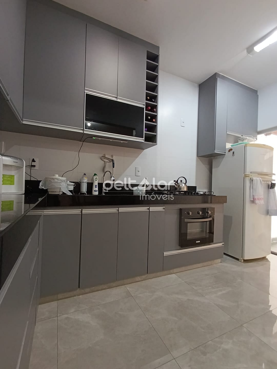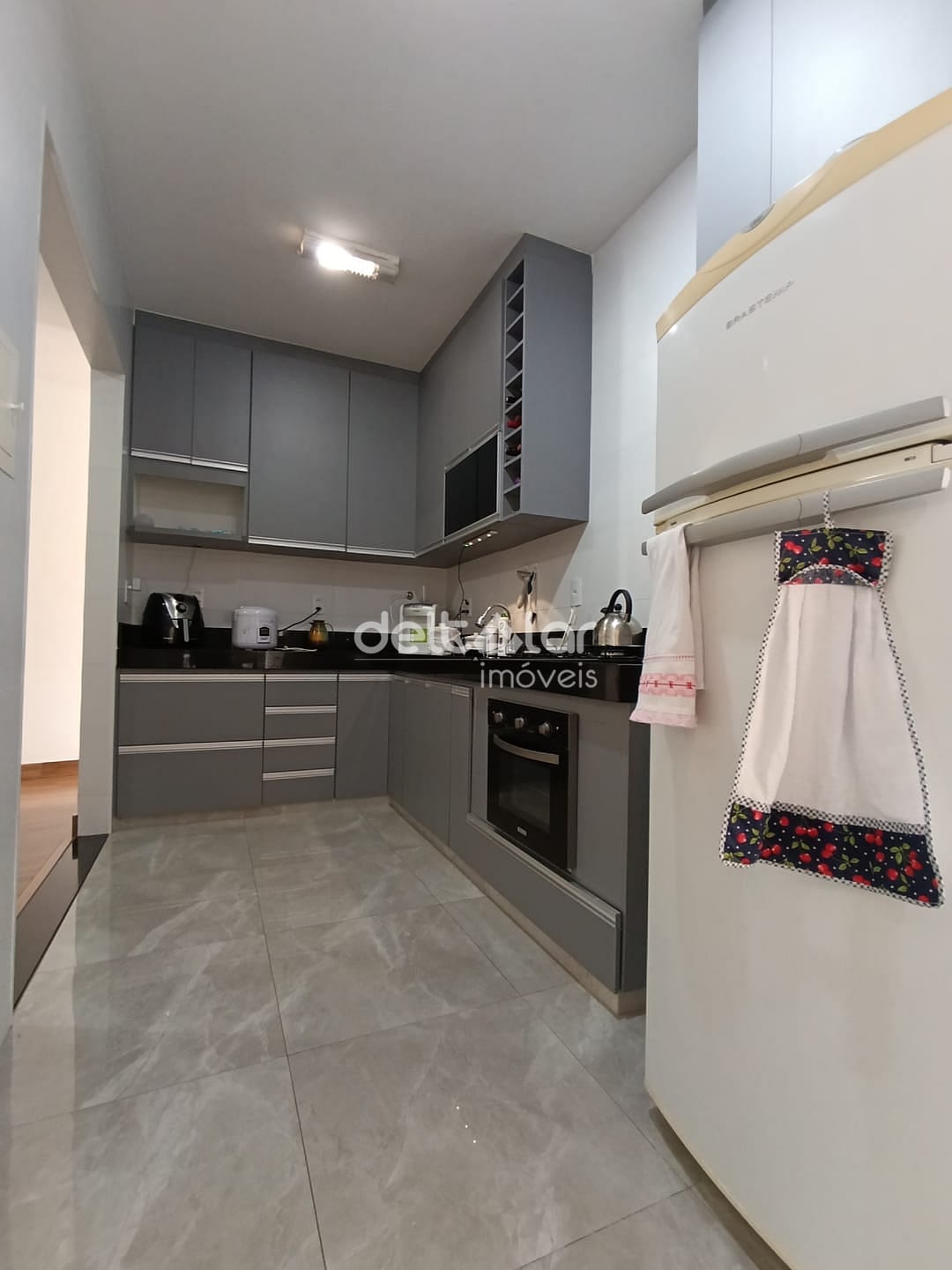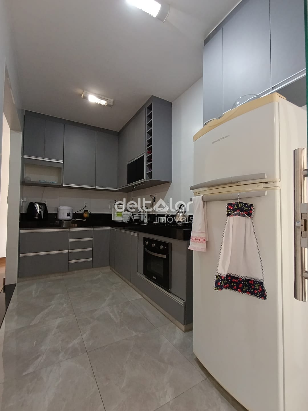 01 Cozinha com armários planejados, bancada em granito e cuba da pia em inox, Copa.