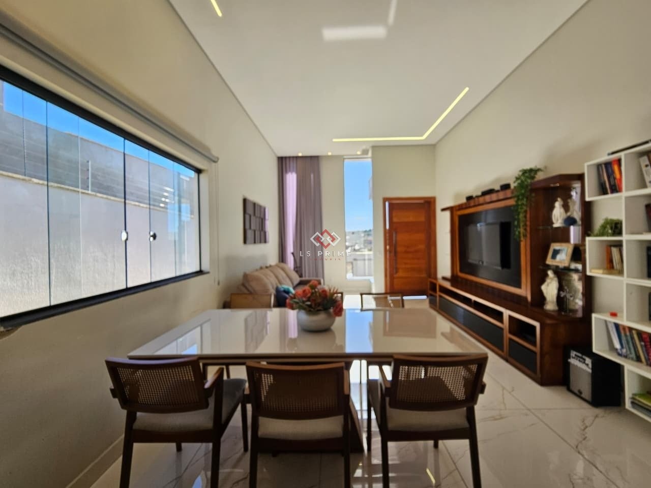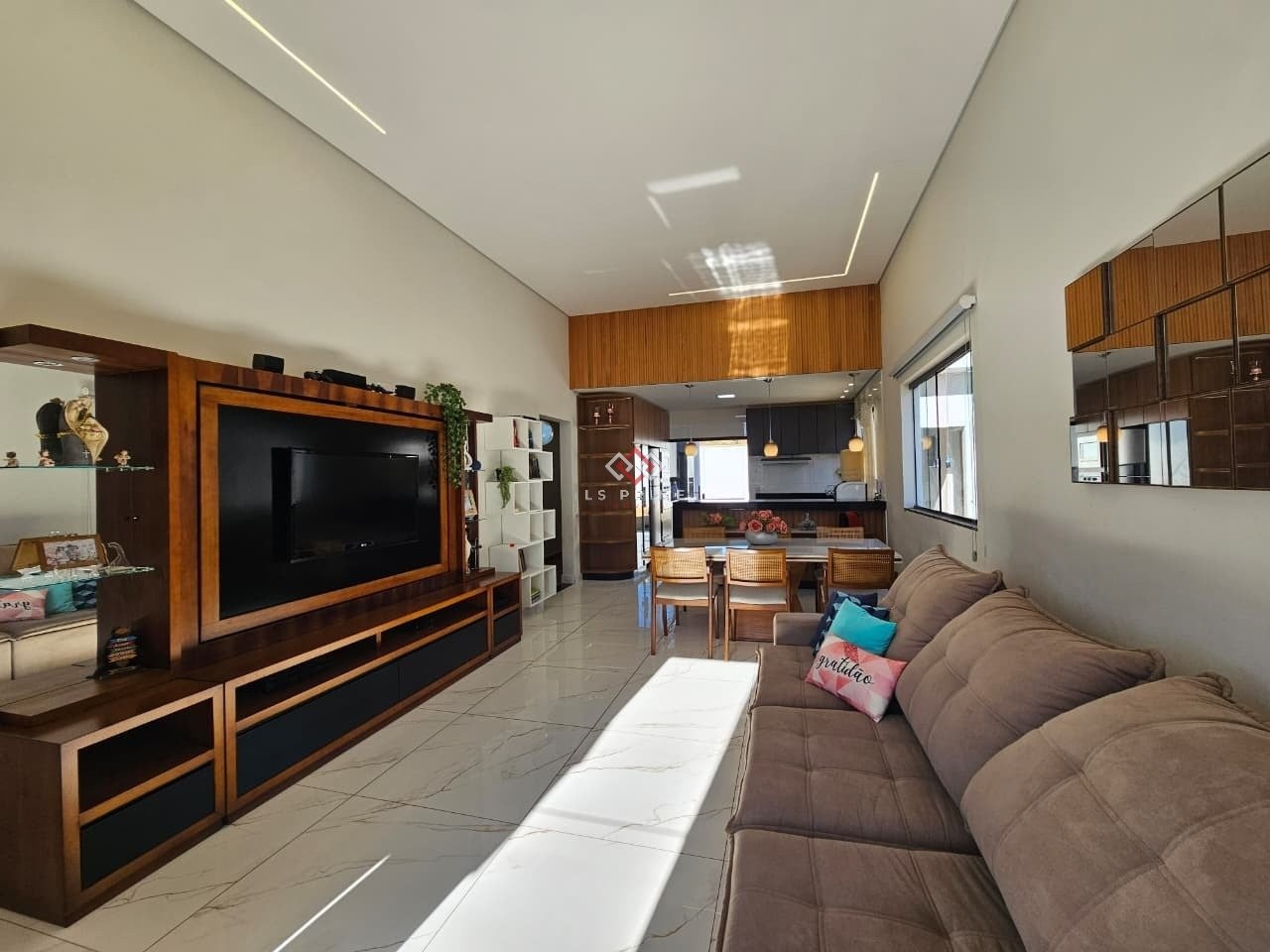 Sala ampla para dois ambientes, com rebaixamento em gesso