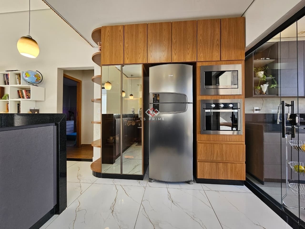 Cozinha americana planejada, equipada com armários