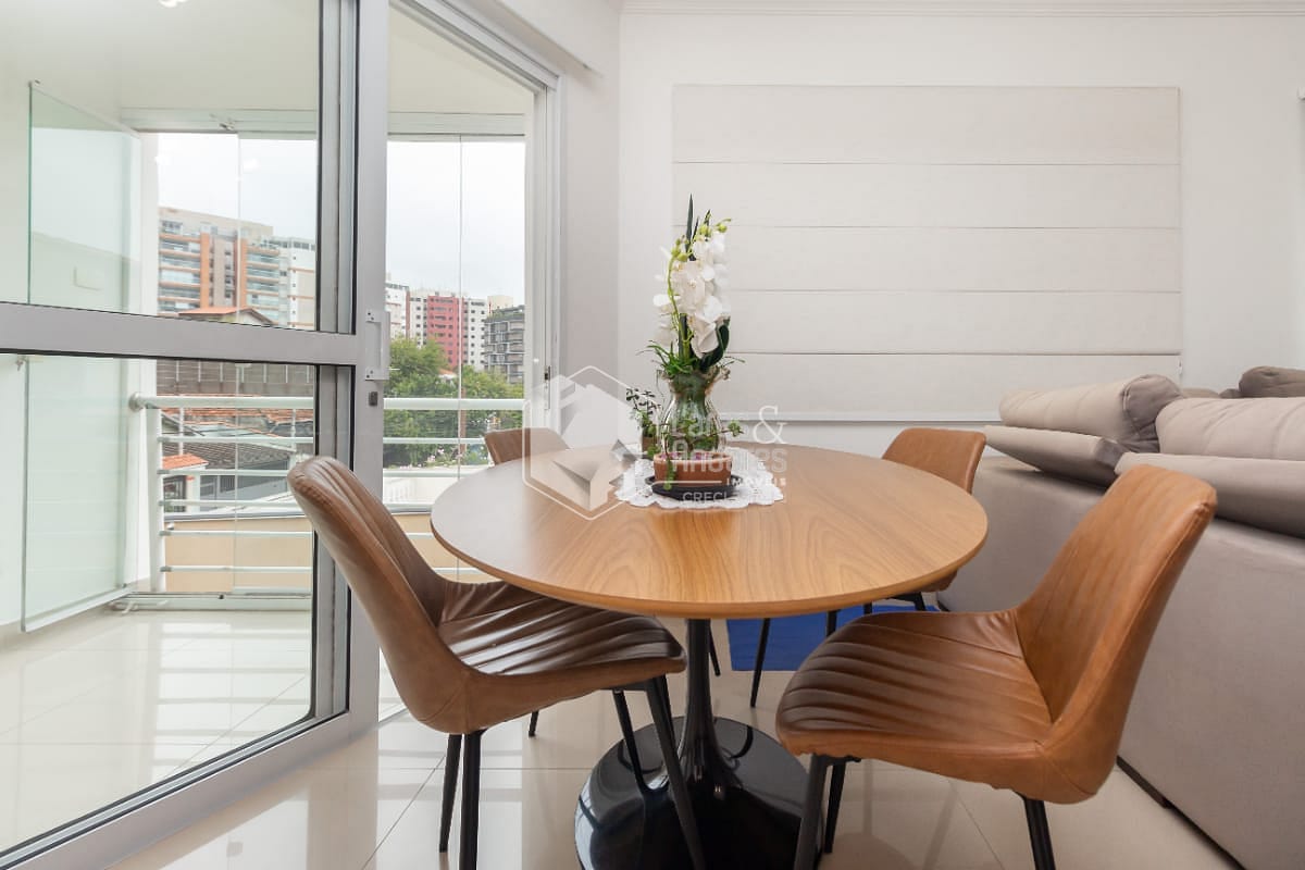 - Sala espaçosa para dois ambientes (estar e jantar), com varanda fechada com janelas sanfonadas de vidro.