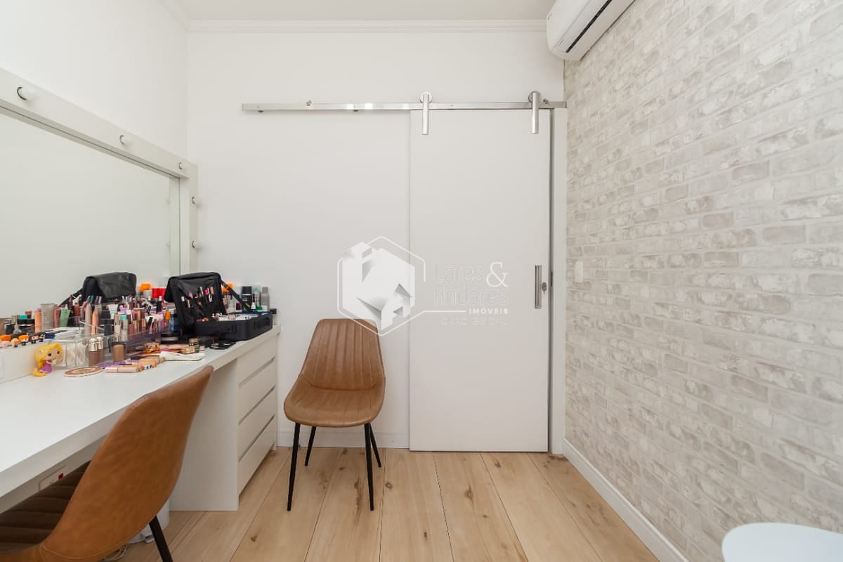 - Acabamentos modernos e de primeira linha: porcelanato, revestimentos sofisticados, cortinas tipo painel, além de ar-condicionado na sala e nos dormitórios.