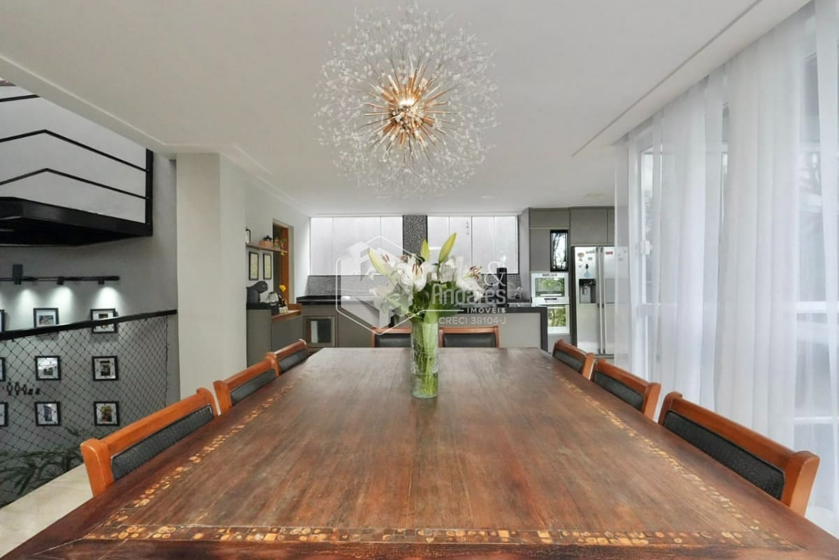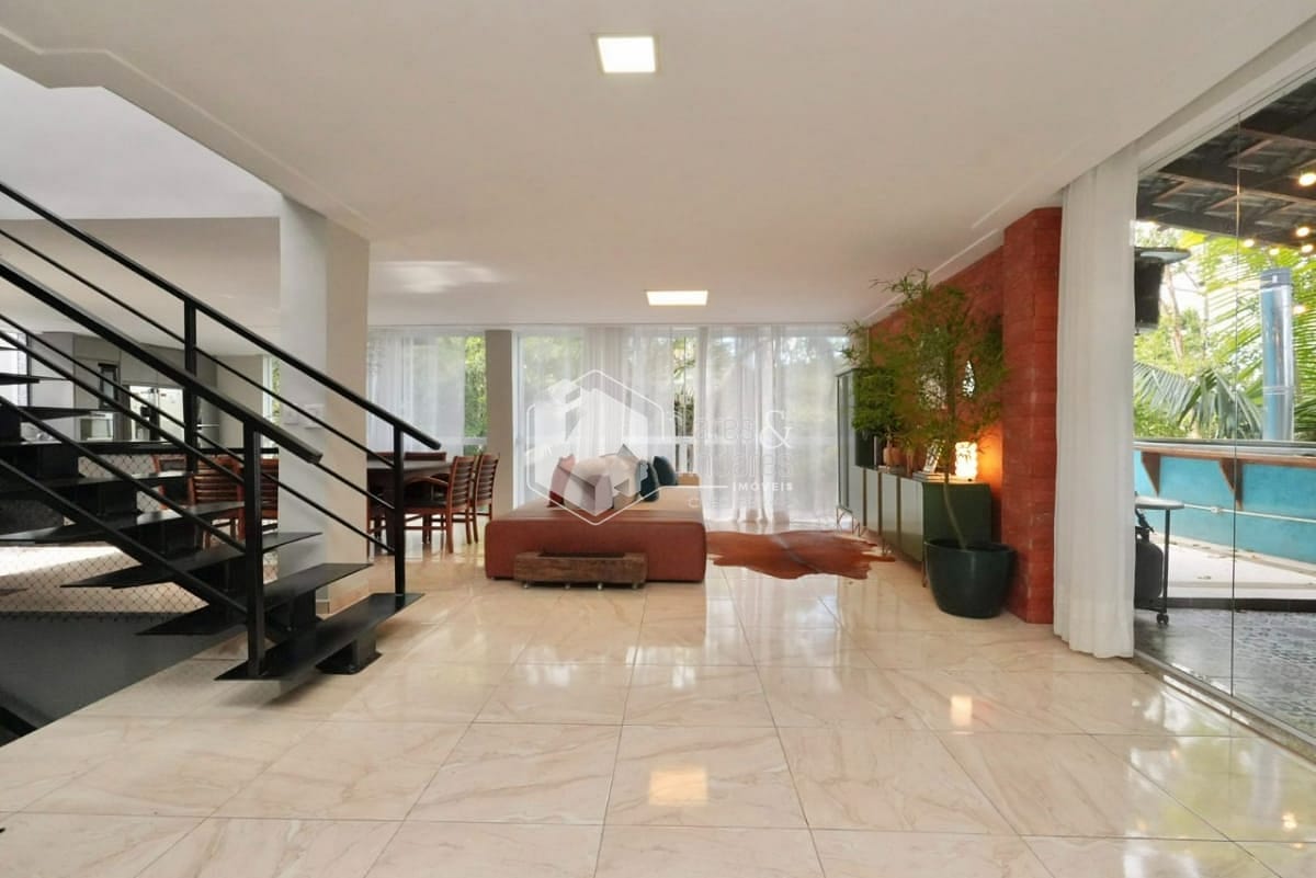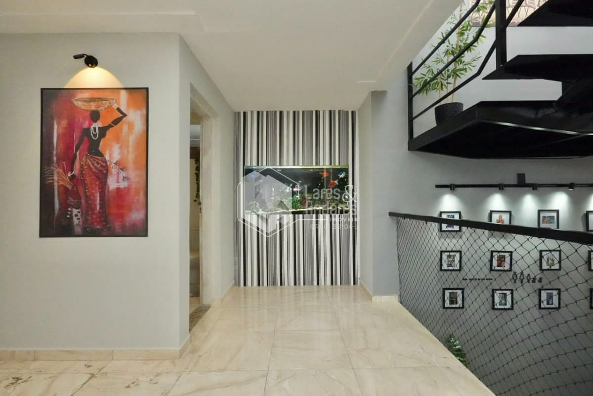 O imóvel conta com 3 suítes espaçosas, 4 banheiros, 1 lavabo, e ambientes integrados que proporcionam fluidez e luminosidade: sala de jantar, sala de estar, sala de TV e cozinha americana moderna, com excelente ventilação e iluminação natural.