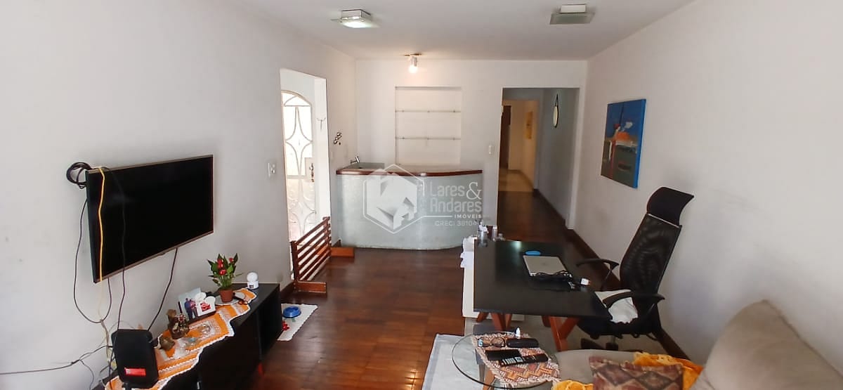 No pavimento superior são 3 dormitórios (sendo 1 suíte) espaçosos, piso em tacos de madeira maciça, armários embutidos em bom estado e banheiros já reformados.