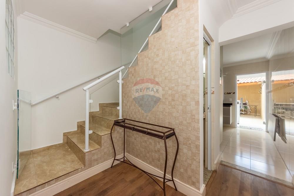 No pavimento superior, encontra-se a área íntima da casa. São três dormitórios, todos bem dimensionados, proporcionando conforto e privacidade. A suíte oferece um espaço acolhedor para o descanso, enquanto os outros dois quartos são atendidos por um banheiro social, com acabamento moderno e funcional.