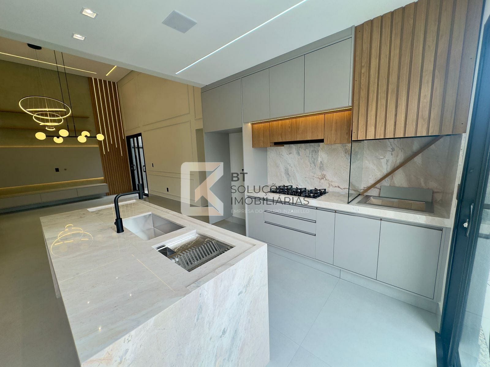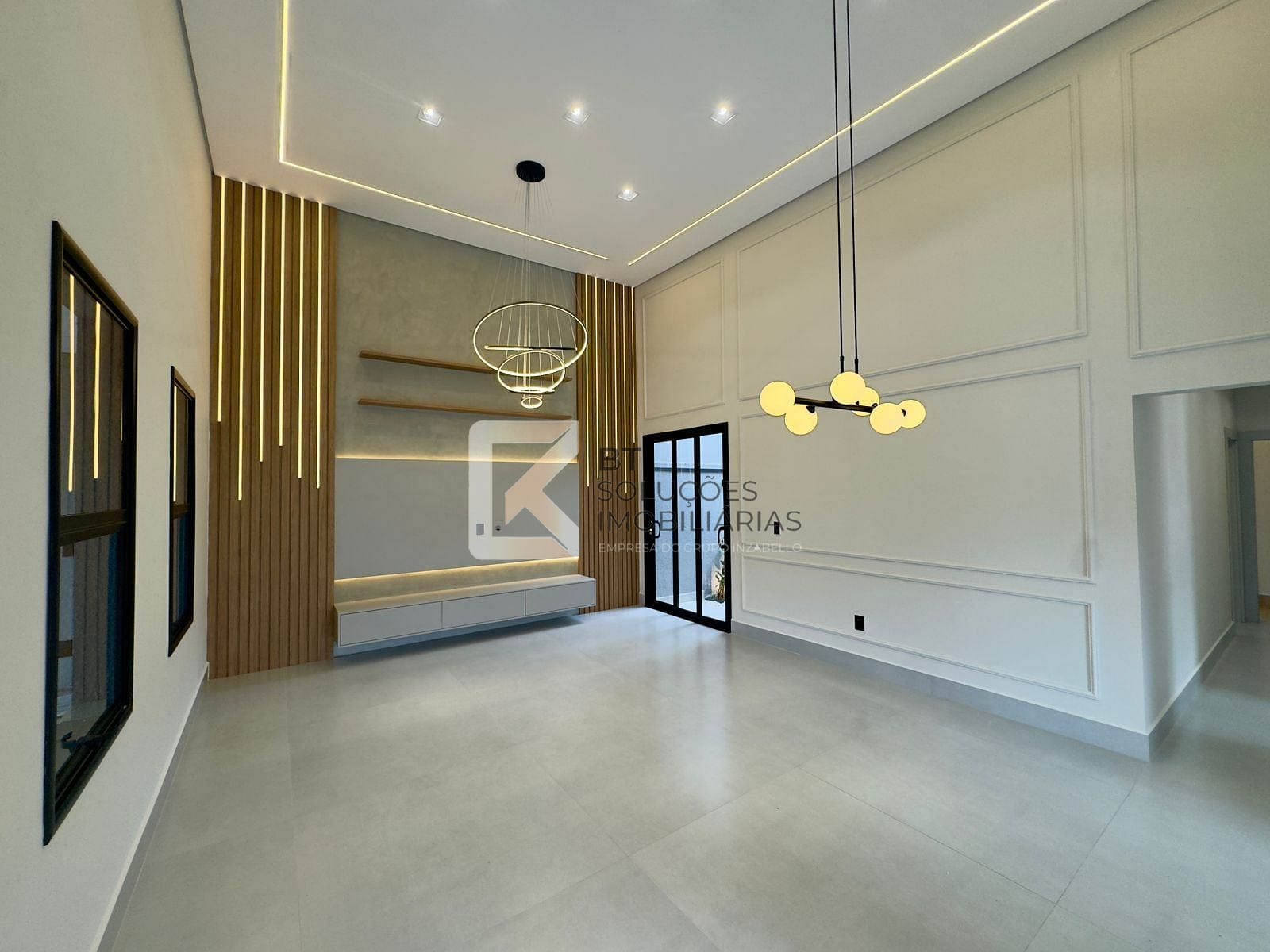 - Sala pé direito duplo 4,5m com lavabo