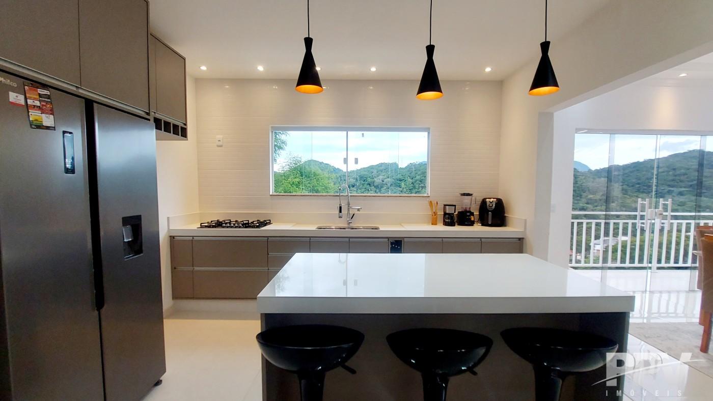 A cozinha planejada é funcional e elegante, com armários sob medida e excelente aproveitamento de espaço.