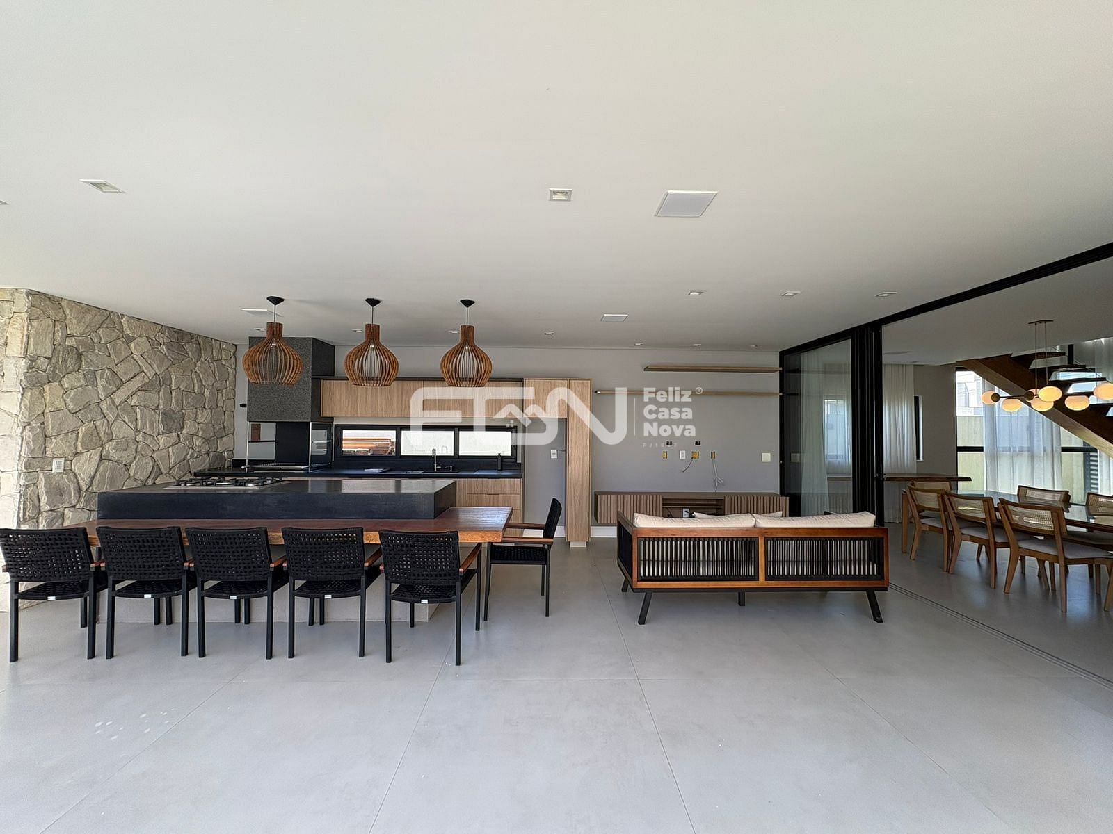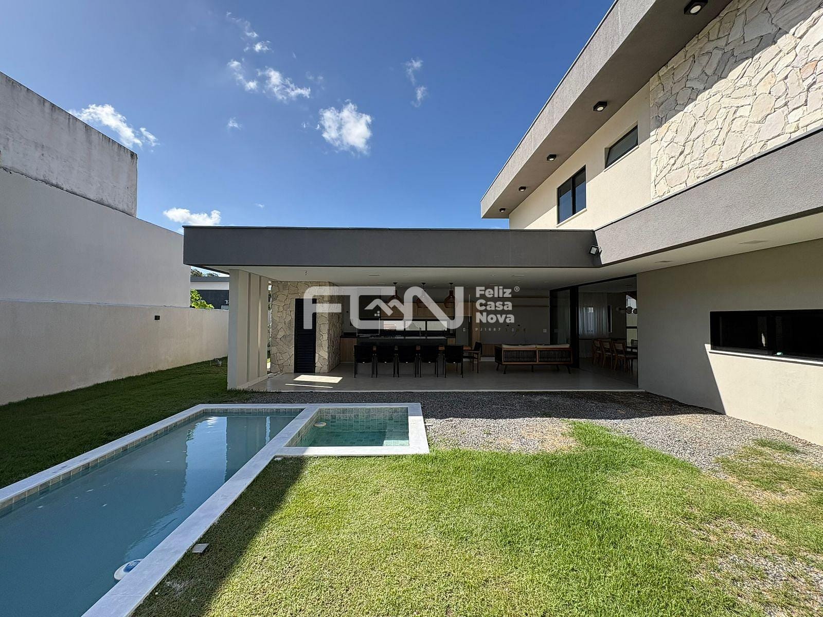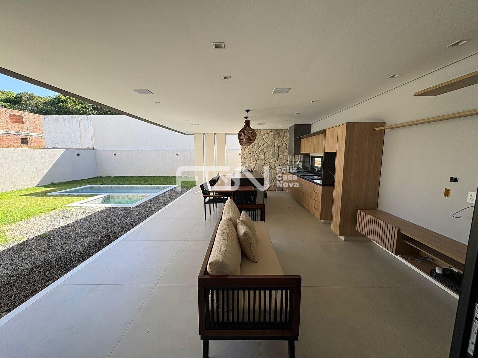 A área externa oferece uma área gourmet completa, com ilha, fogão, mesa embutida e churrasqueira com exaustor, além de piscina com hidromassagem, ideal para momentos de lazer. O imóvel conta ainda com quatro vagas de garagem e esquadrias Linha Gold.