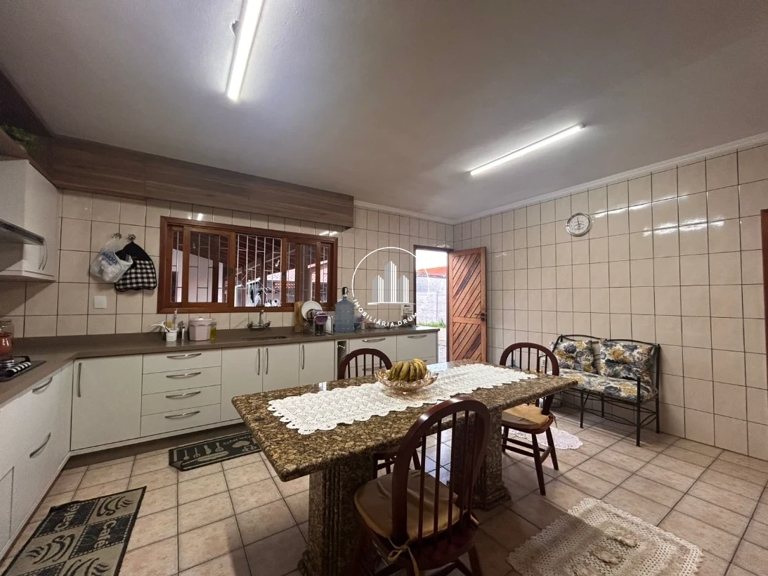 A propriedade inclui edícula independente com quarto, banheiro e área ampla equipada com churrasqueira e fogão a lenha, totalizando 400m² de área útil. O imóvel dispõe de sistema de aquecimento solar e portão eletrônico, garantindo economia e segurança para toda a família.