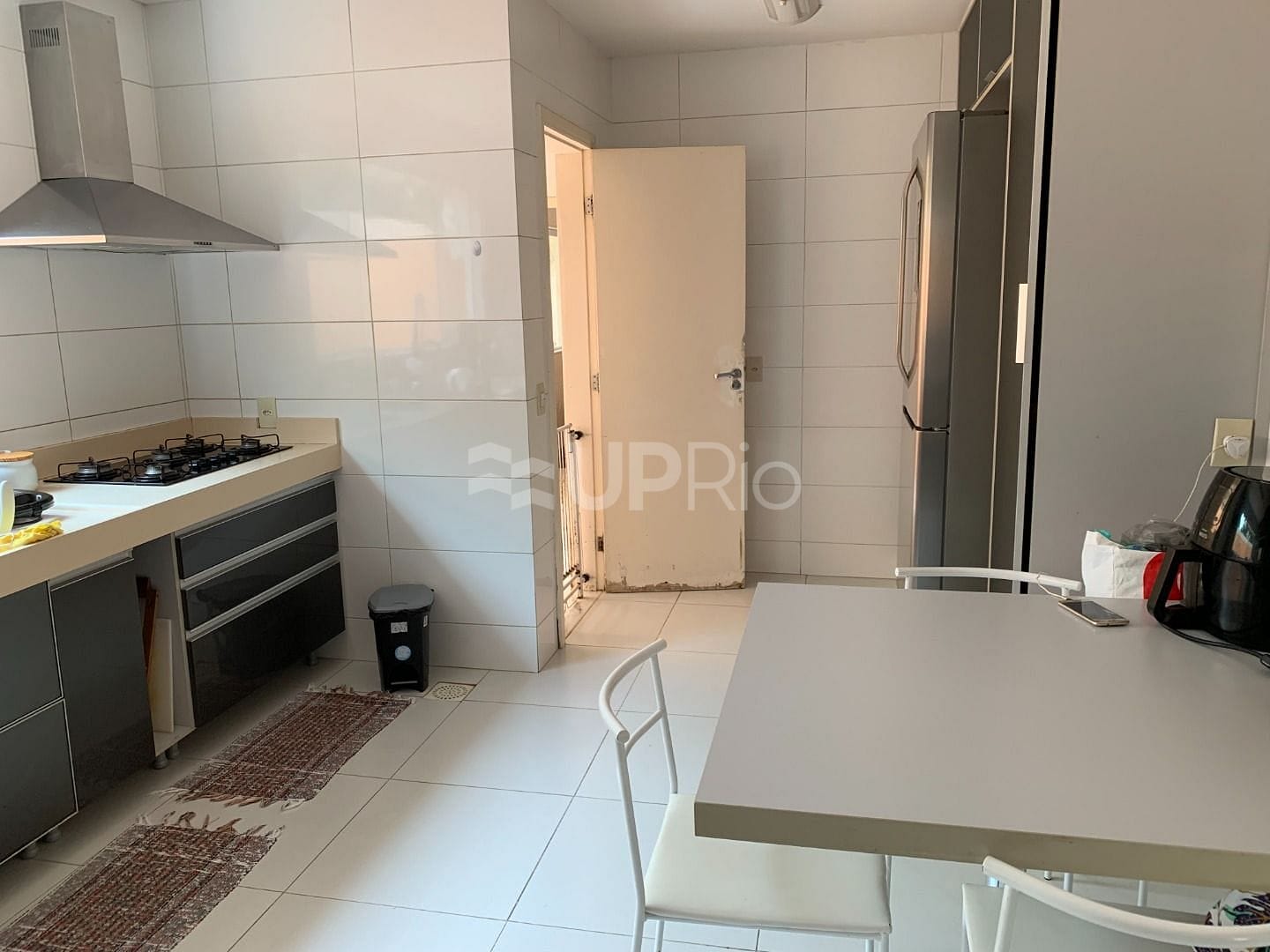 Cozinha com armários embutidos e área de serviço funcional