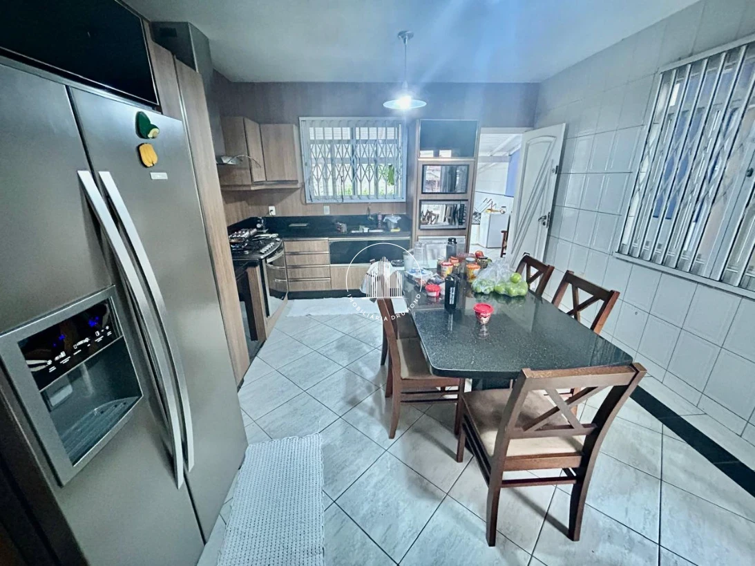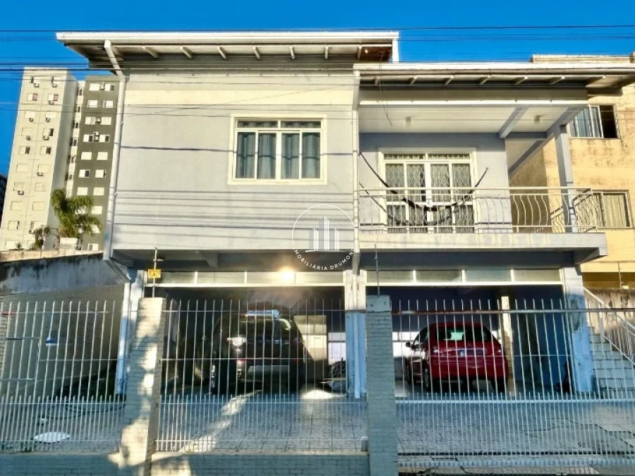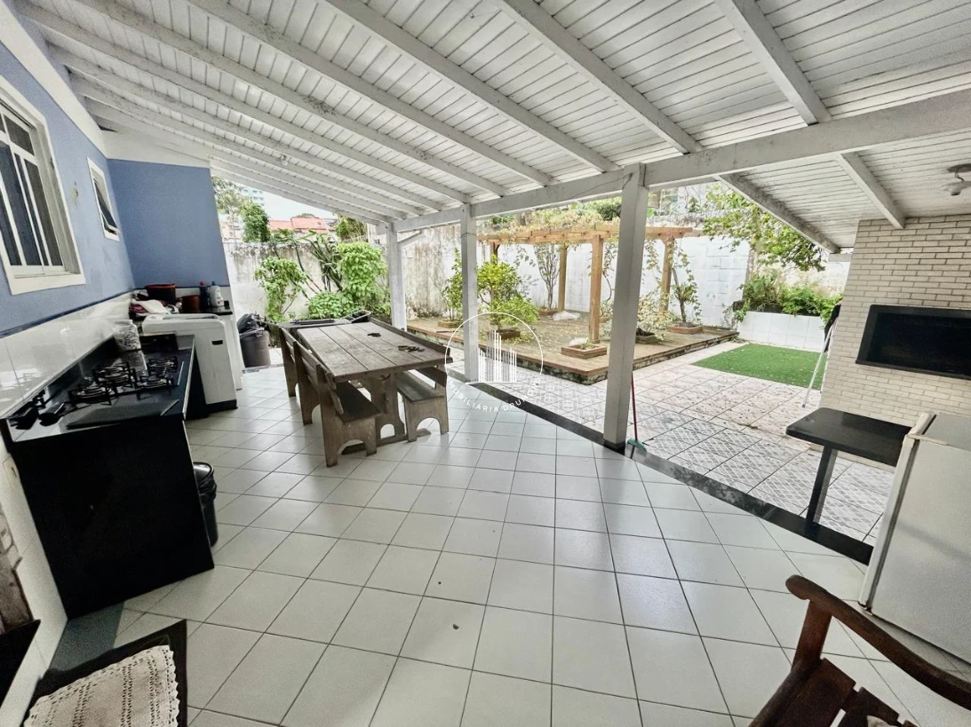 Casa com 4 quartos em Barreiros, São José com 195m² e ampla área para garagem. O imóvel possui 4 dormitórios sendo 1 suíte, 1 banheiro adicional e 4 vagas de garagem cobertas. A casa conta com sacada e área gourmet com churrasqueira integrada, ideal para momentos de lazer em família.