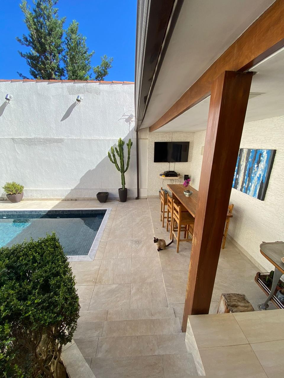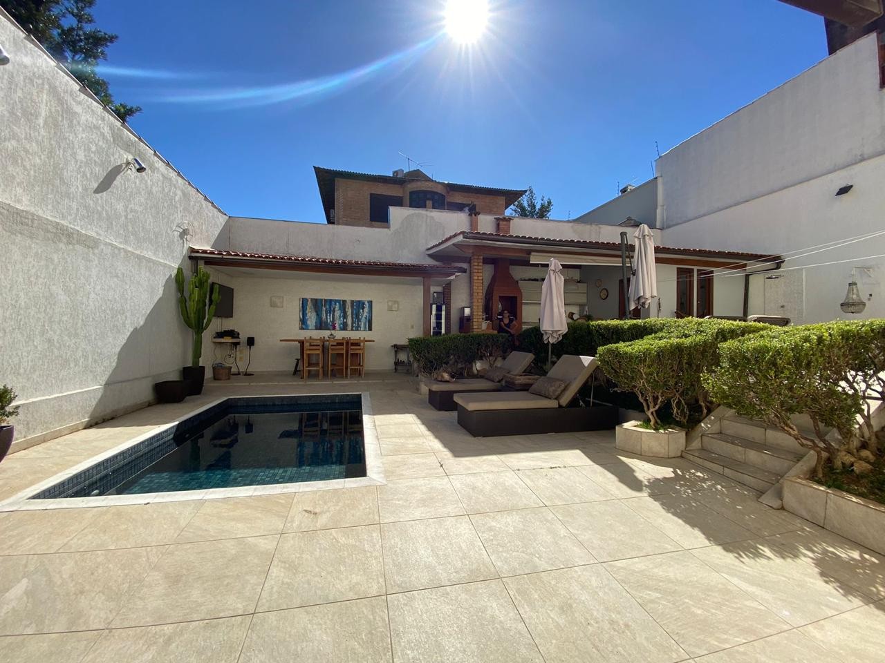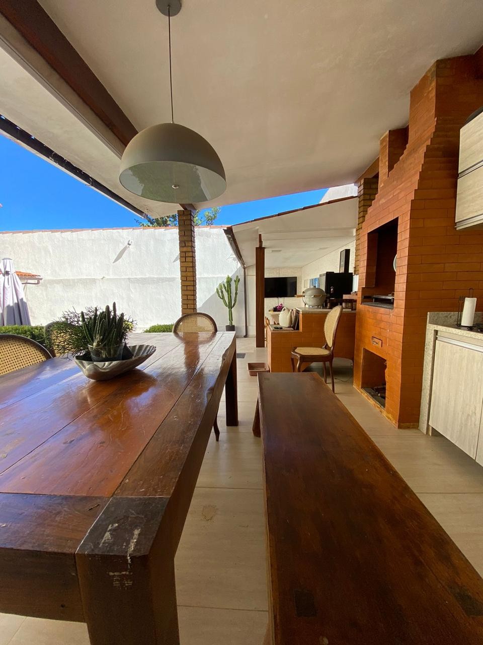 Além disso, a casa conta com uma área externa encantadora, com espaço para lazer e relaxamento. O jardim bem cuidado e a área de churrasco com piscina e fogão a lenha, são ideais para aproveitar os dias ensolarados e as noites estreladas.