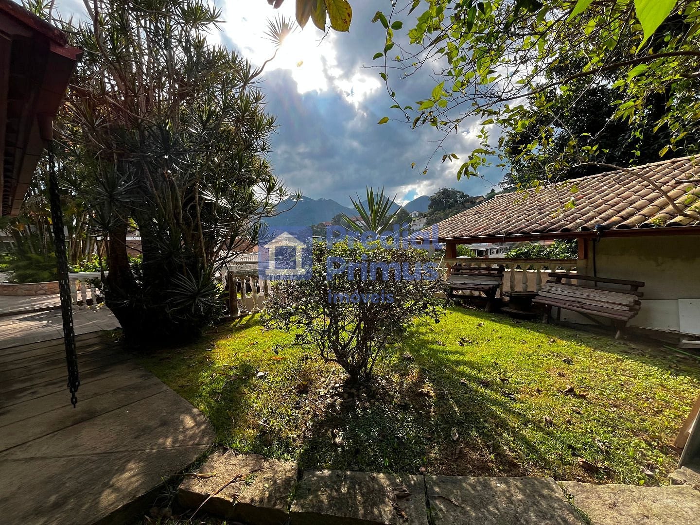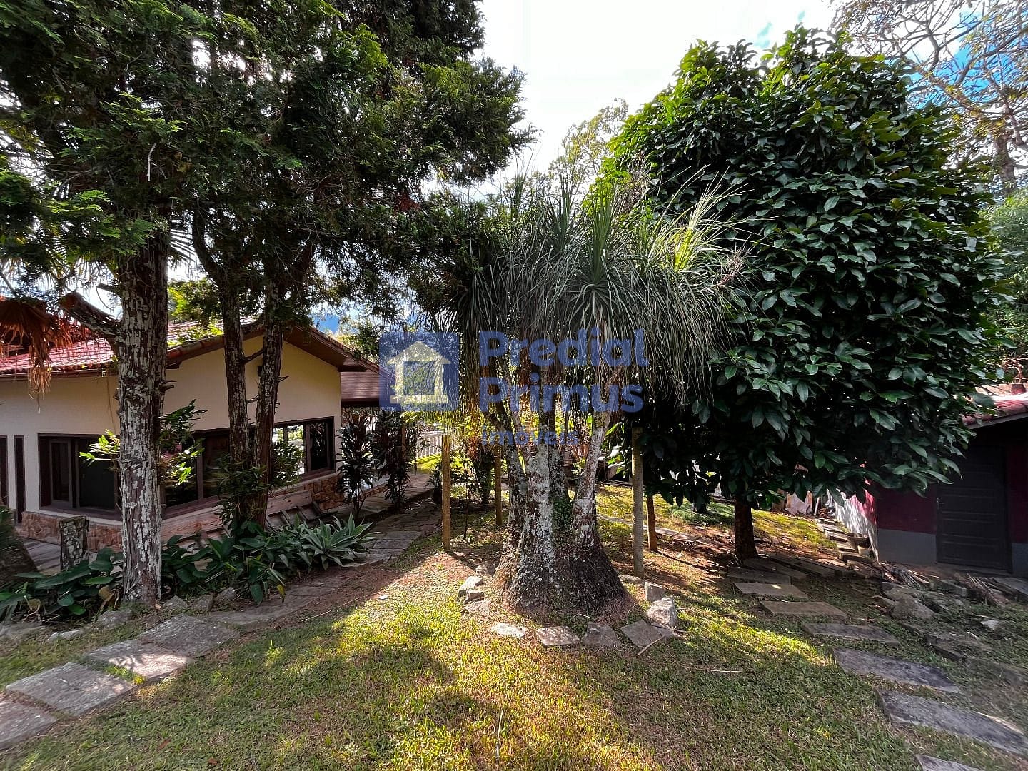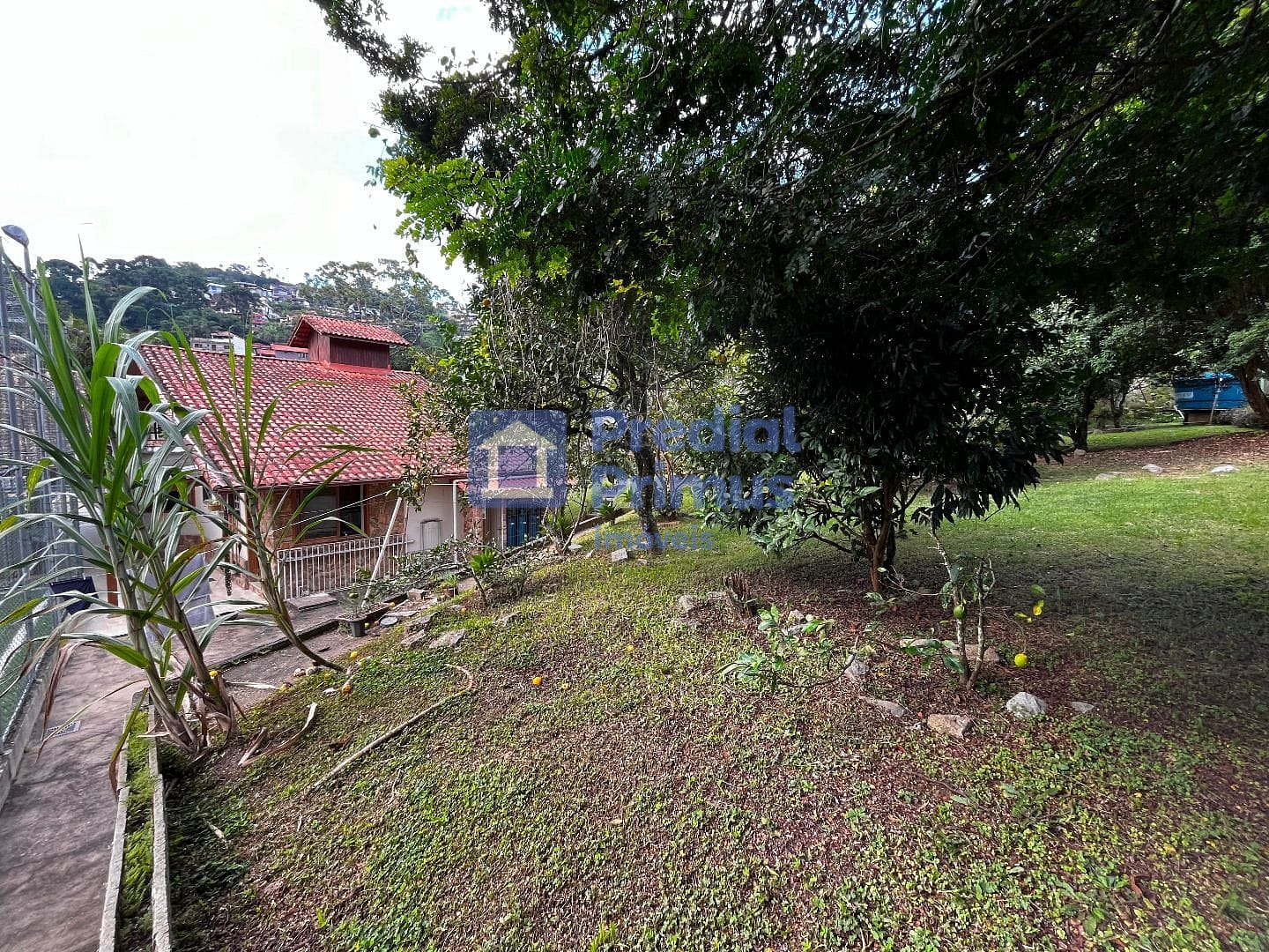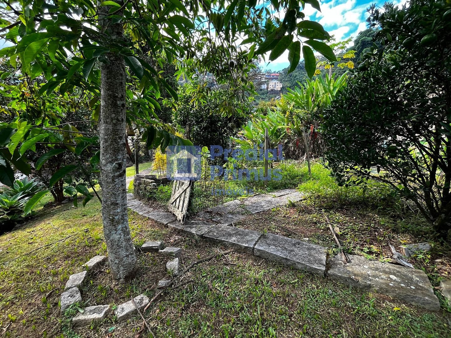 Pomar com árvores frutíferas, hortinha e majestoso Pau-Brasil
