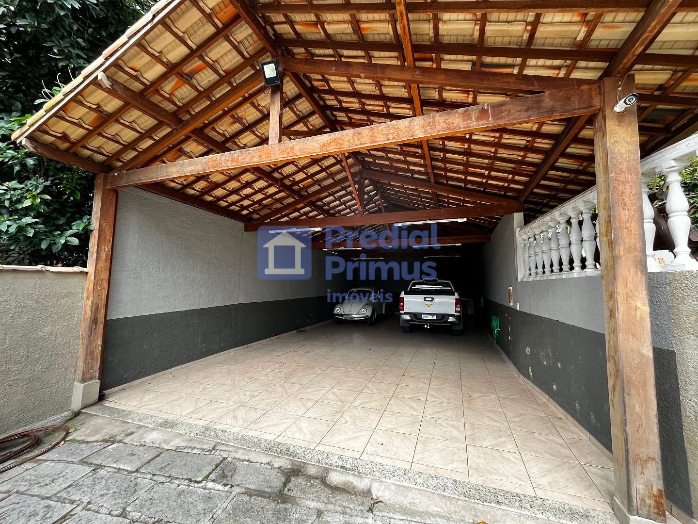 Garagem coberta para 6 carros e espaço externo para mais 10 veículos