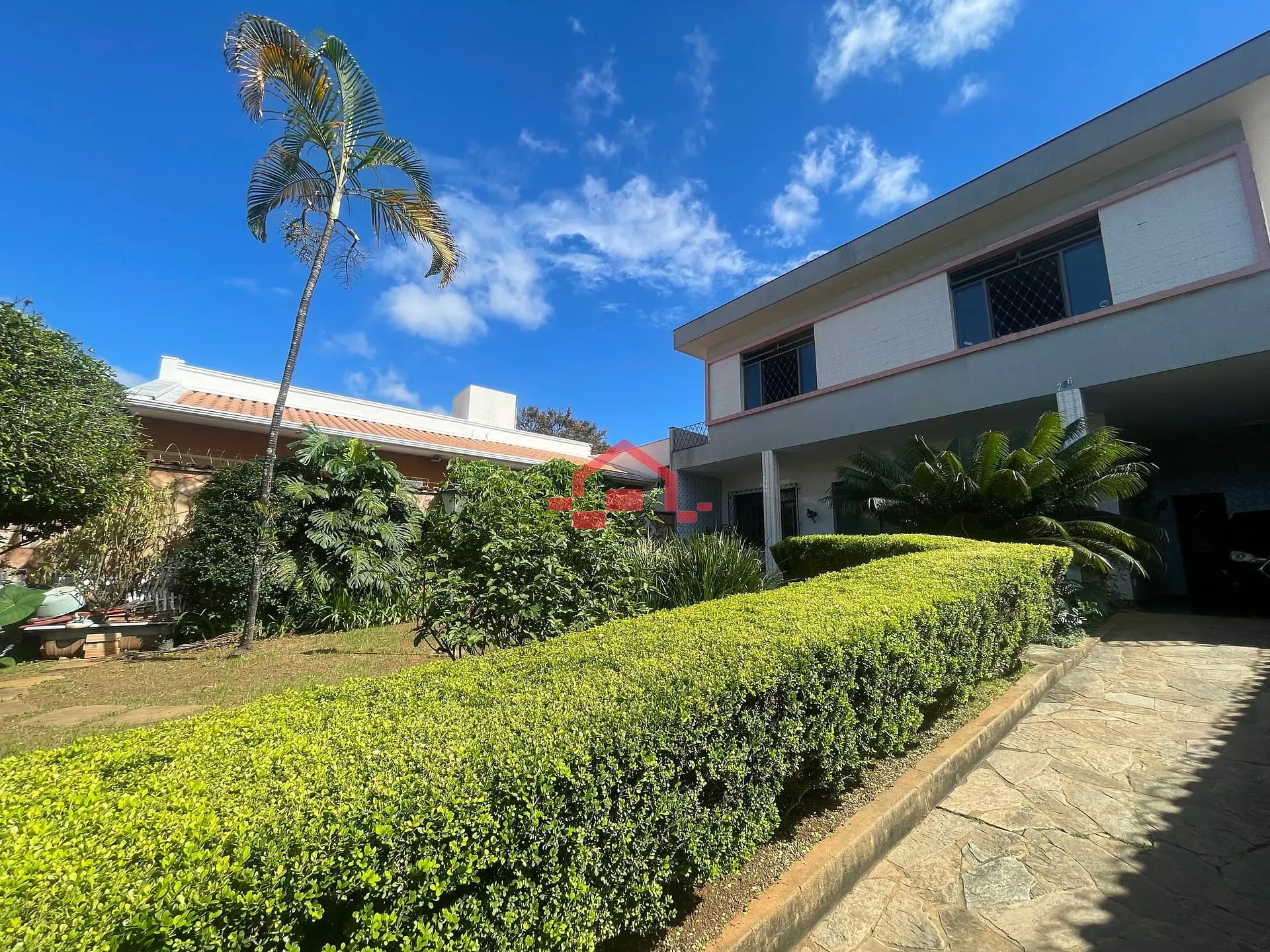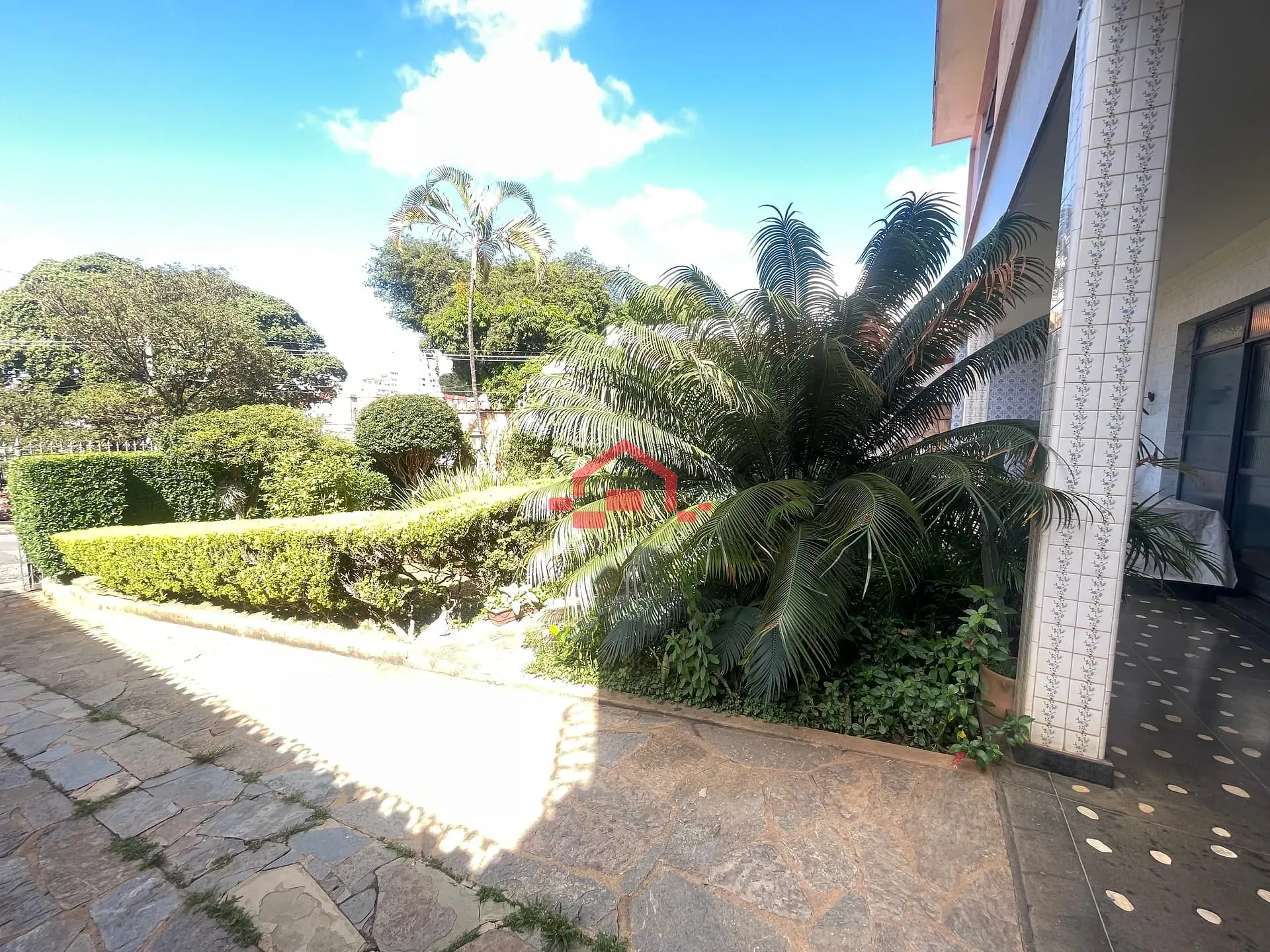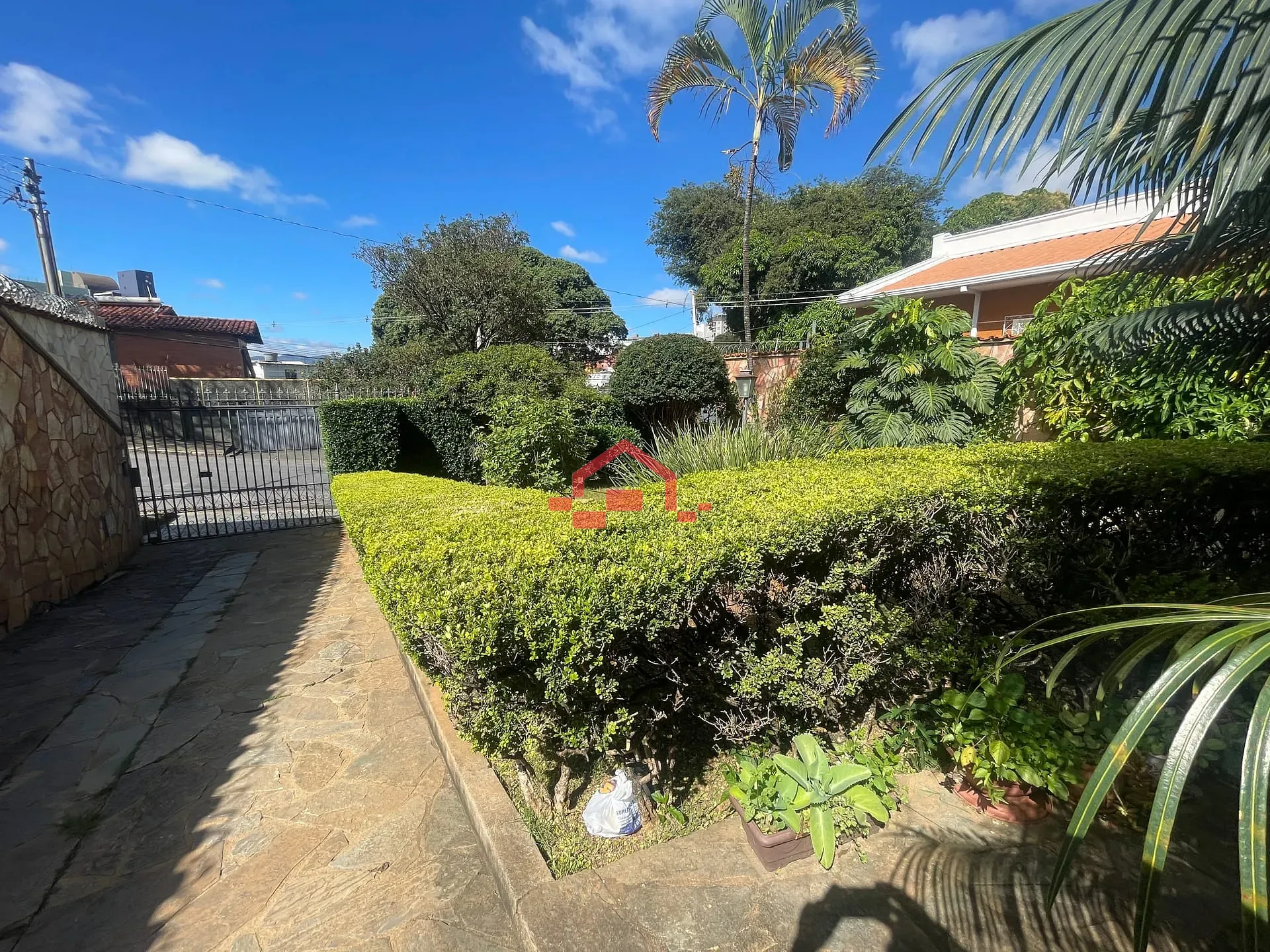 - Entrada com muito verde e jardim encantador