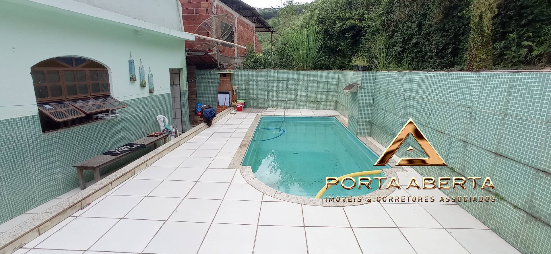 Excelente casa residencial com 4 quartos, banheiro social, cozinha, área de serviço, quintal com piscina, banheiro, área gourmet e terraço.