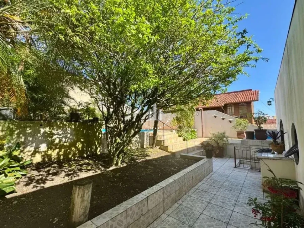 Fundos com edícula com churrasqueira a carvão, banheiro social, dependência de empregada. Amplo pátio com piscina, jardim e árvores. Frente da casa com pátio para estacionamento. Casa totalmente em alvenaria em ótimo estado de conservação. A casa é financiável.