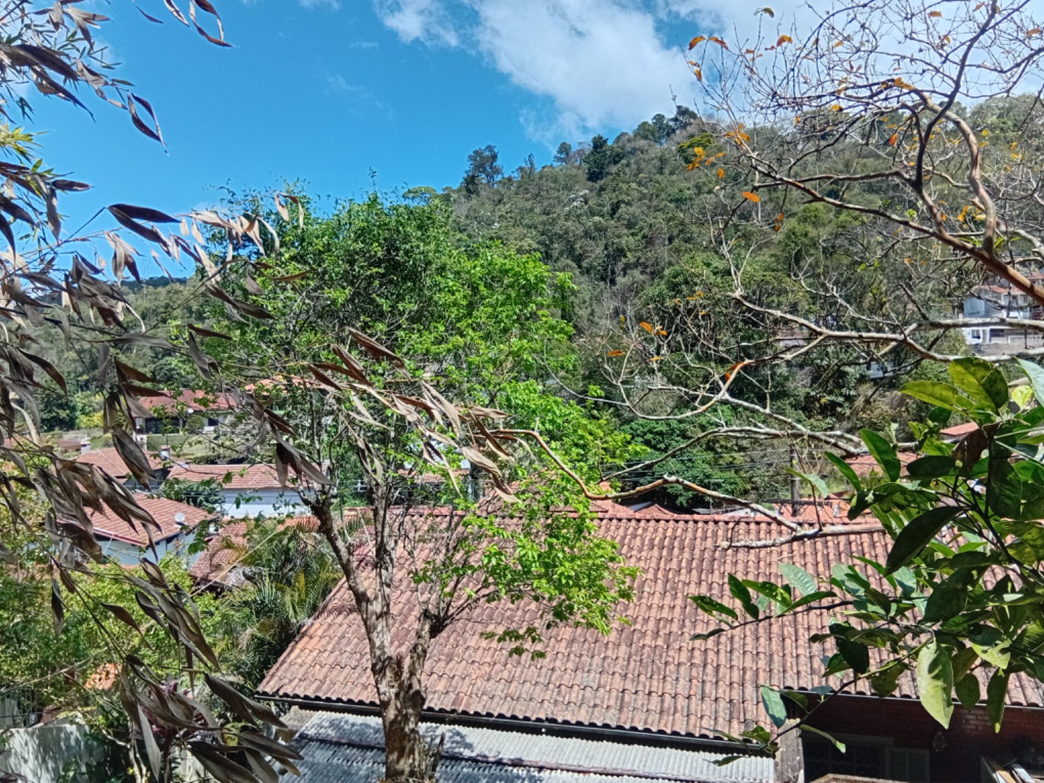 Um lugar tranquilo, cercado por natureza e com fácil acesso ao ponto de ônibus.