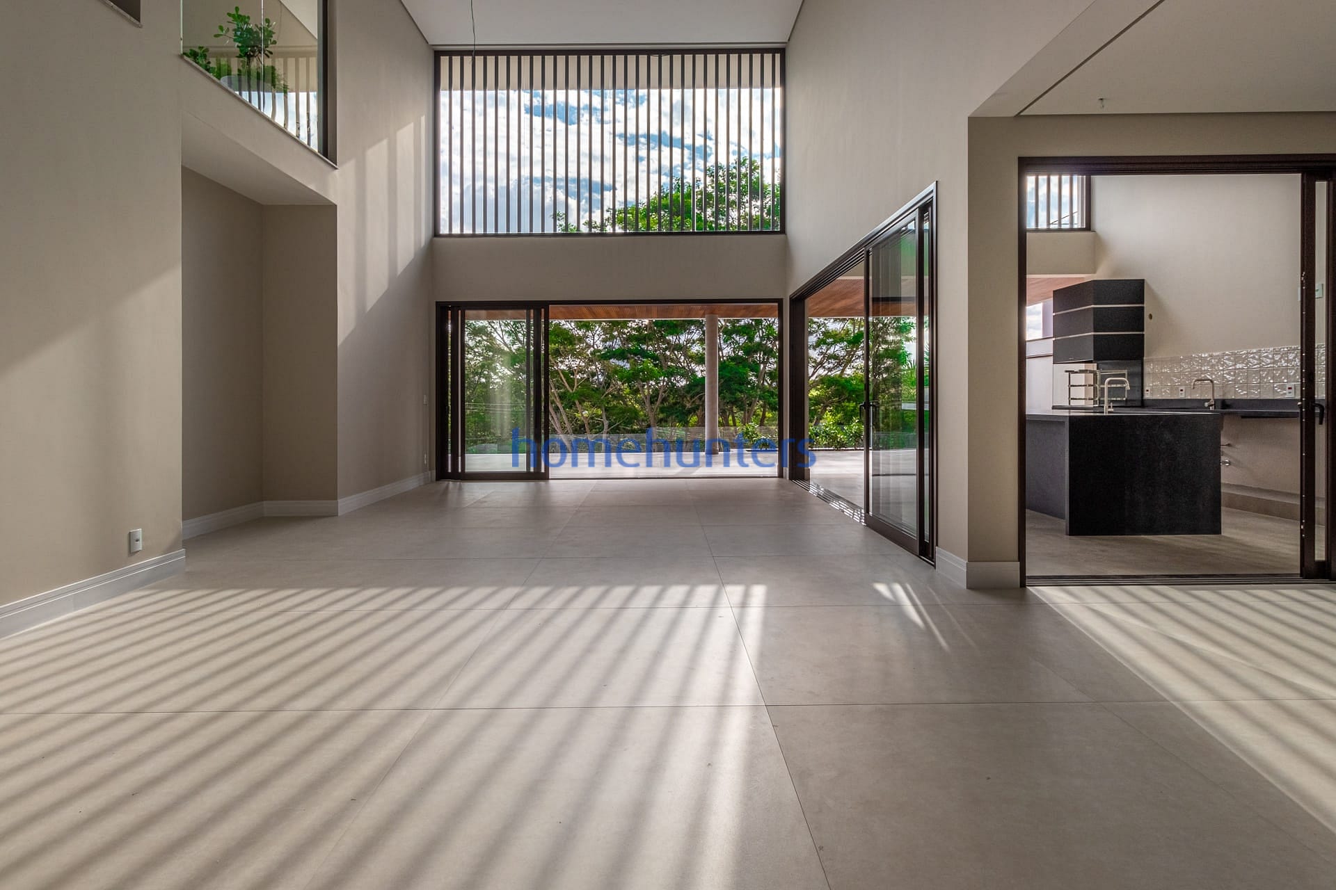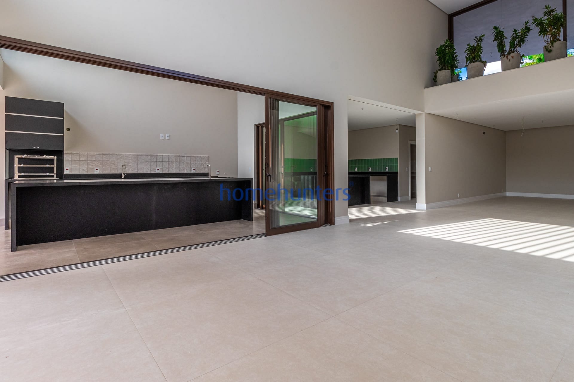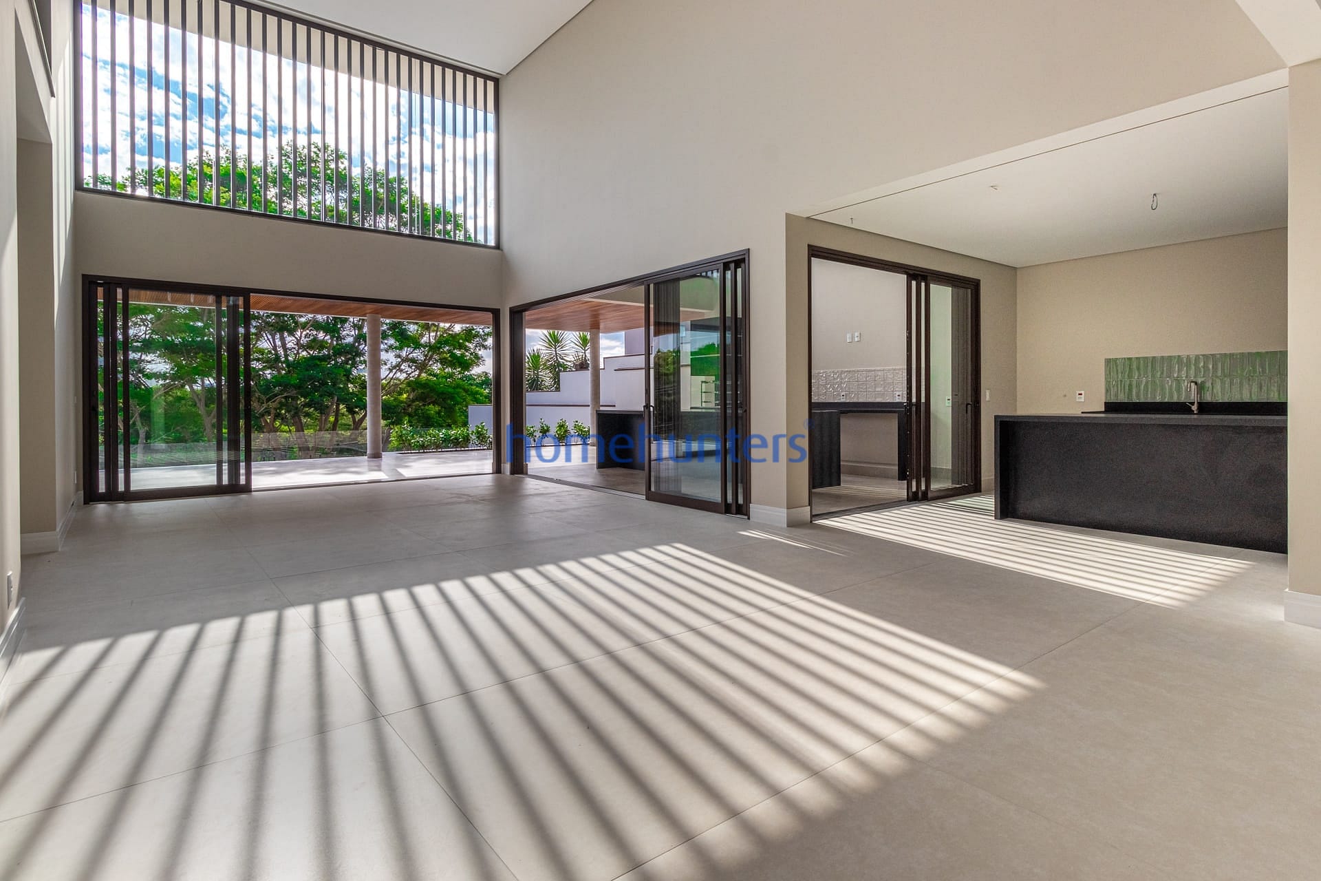 Living integrado com sala de estar, sala de jantar e home theater