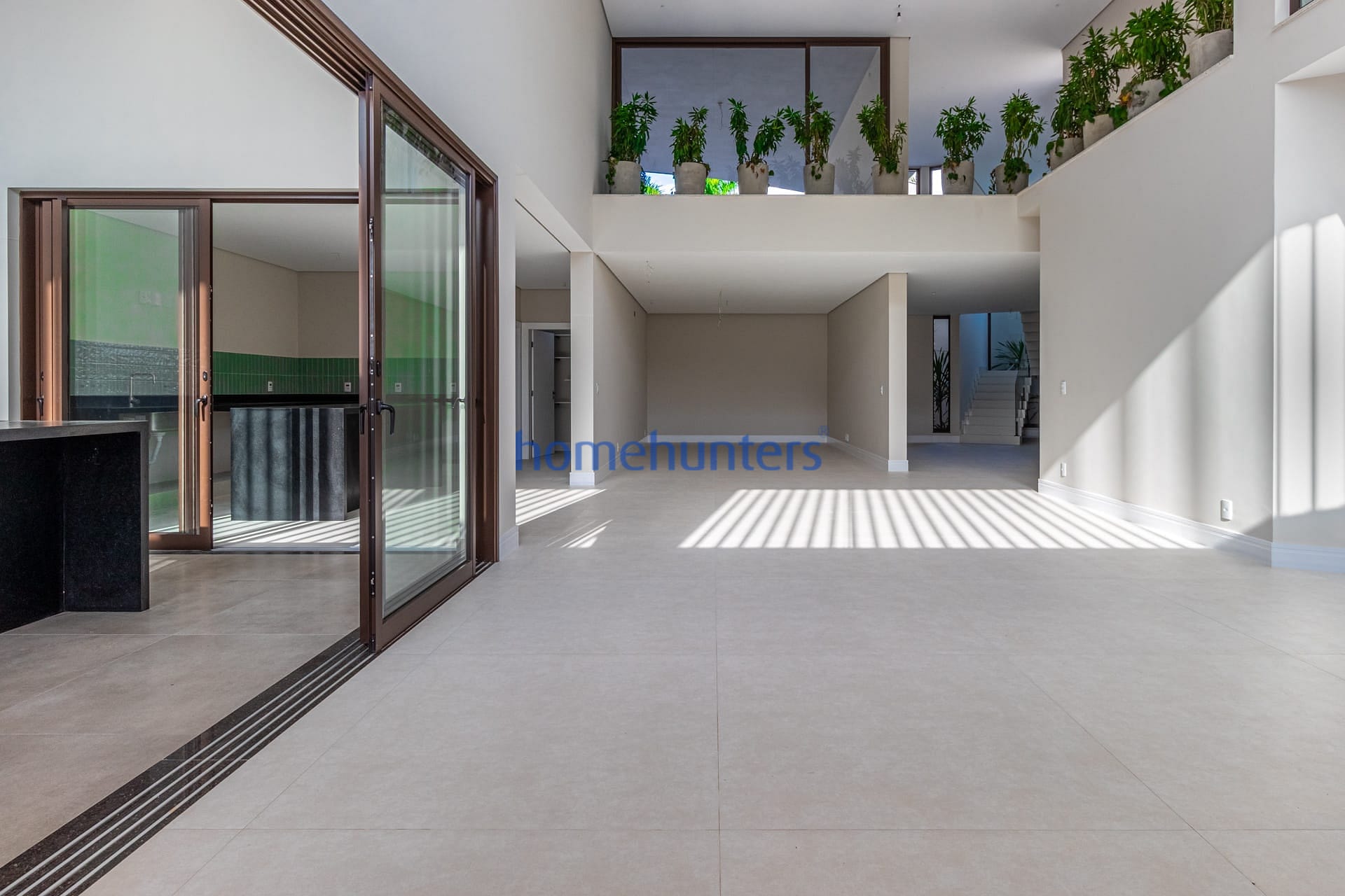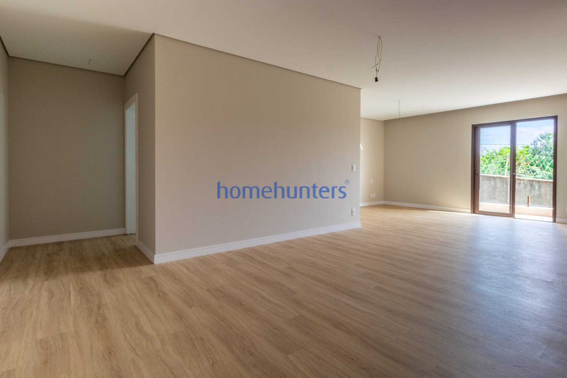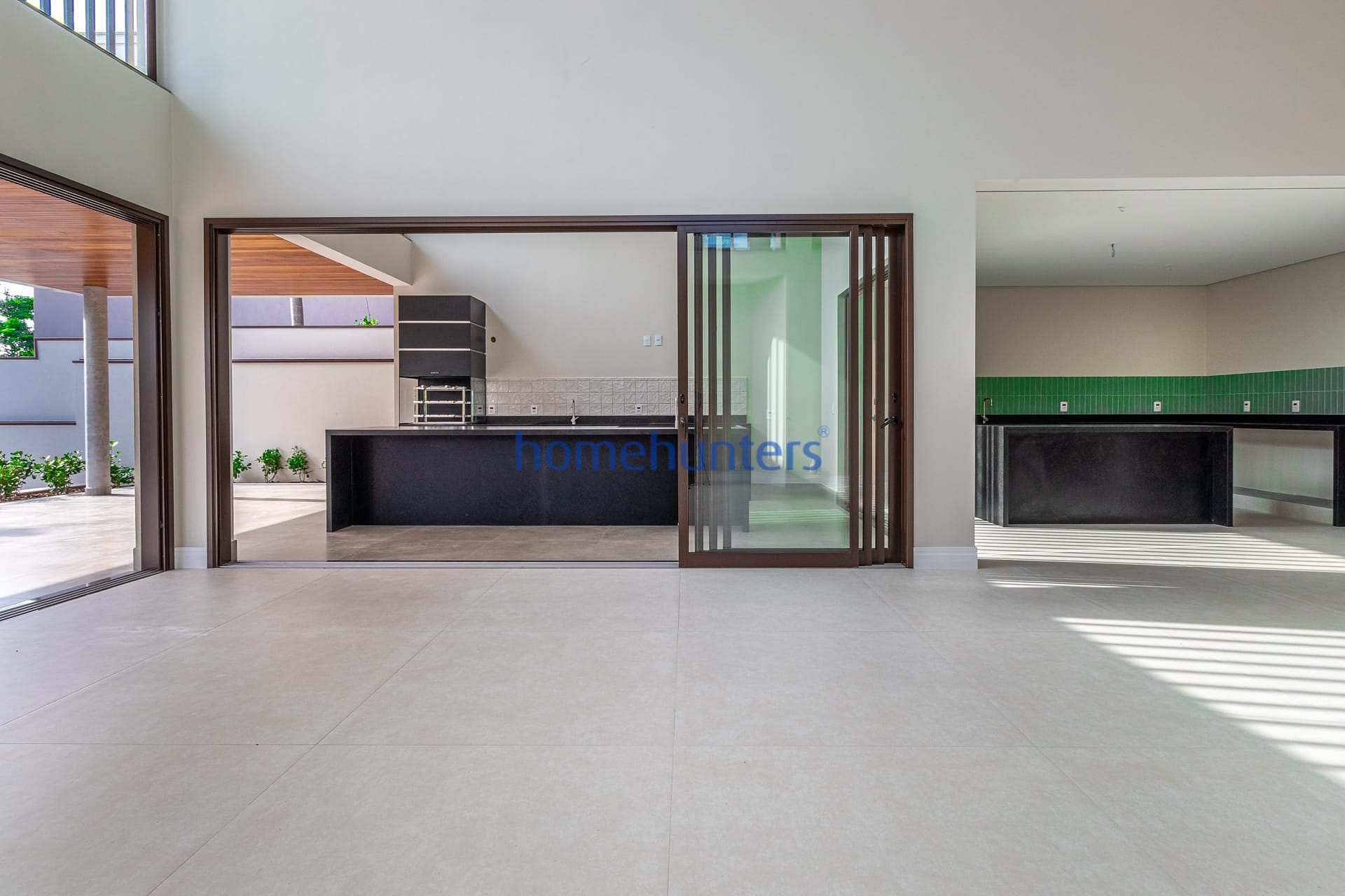 Living integrado com sala de estar, sala de jantar e home theater