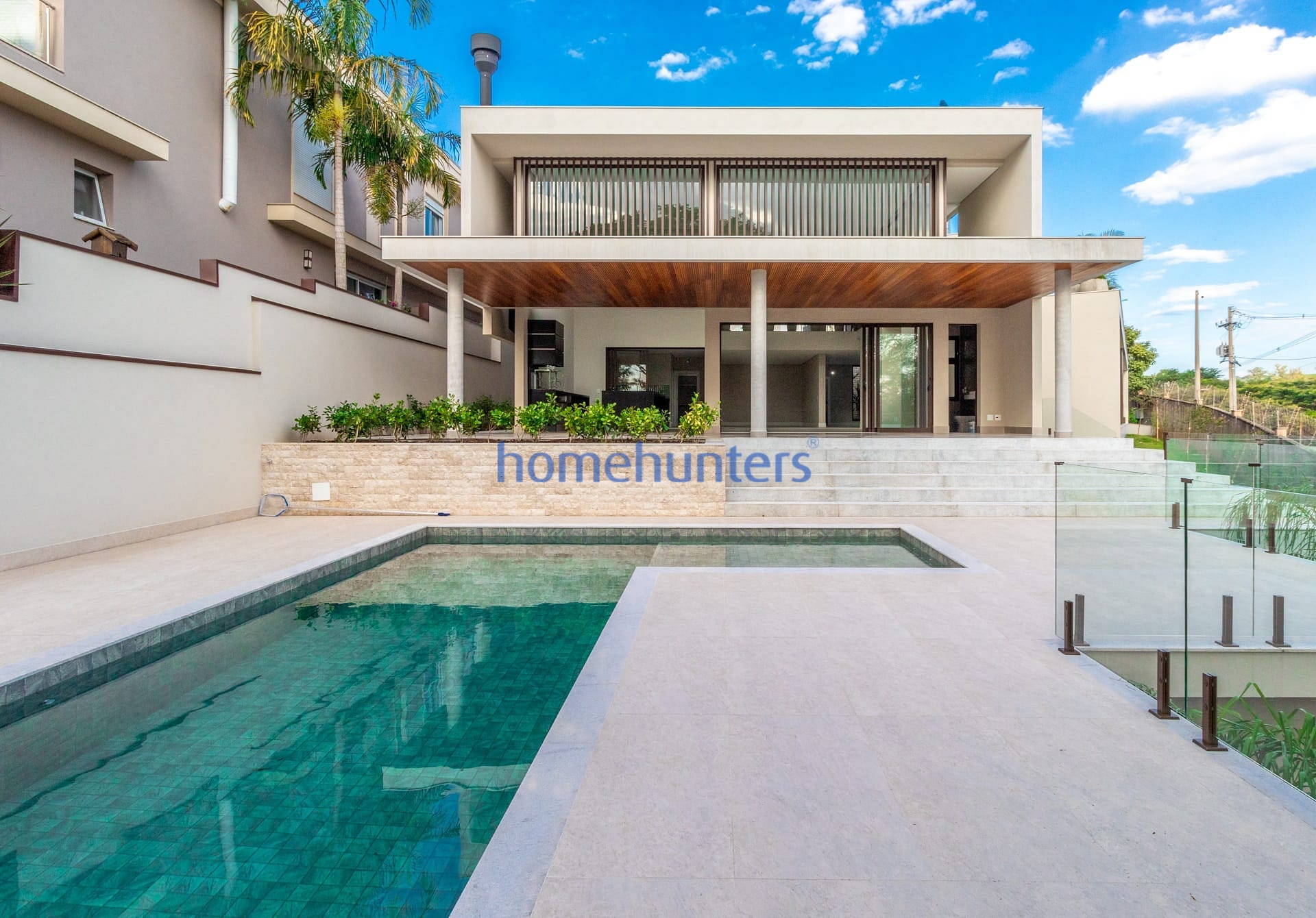 Piscina com infraestrutura para aquecimento e amplo quintal com paisagismo recém-executado