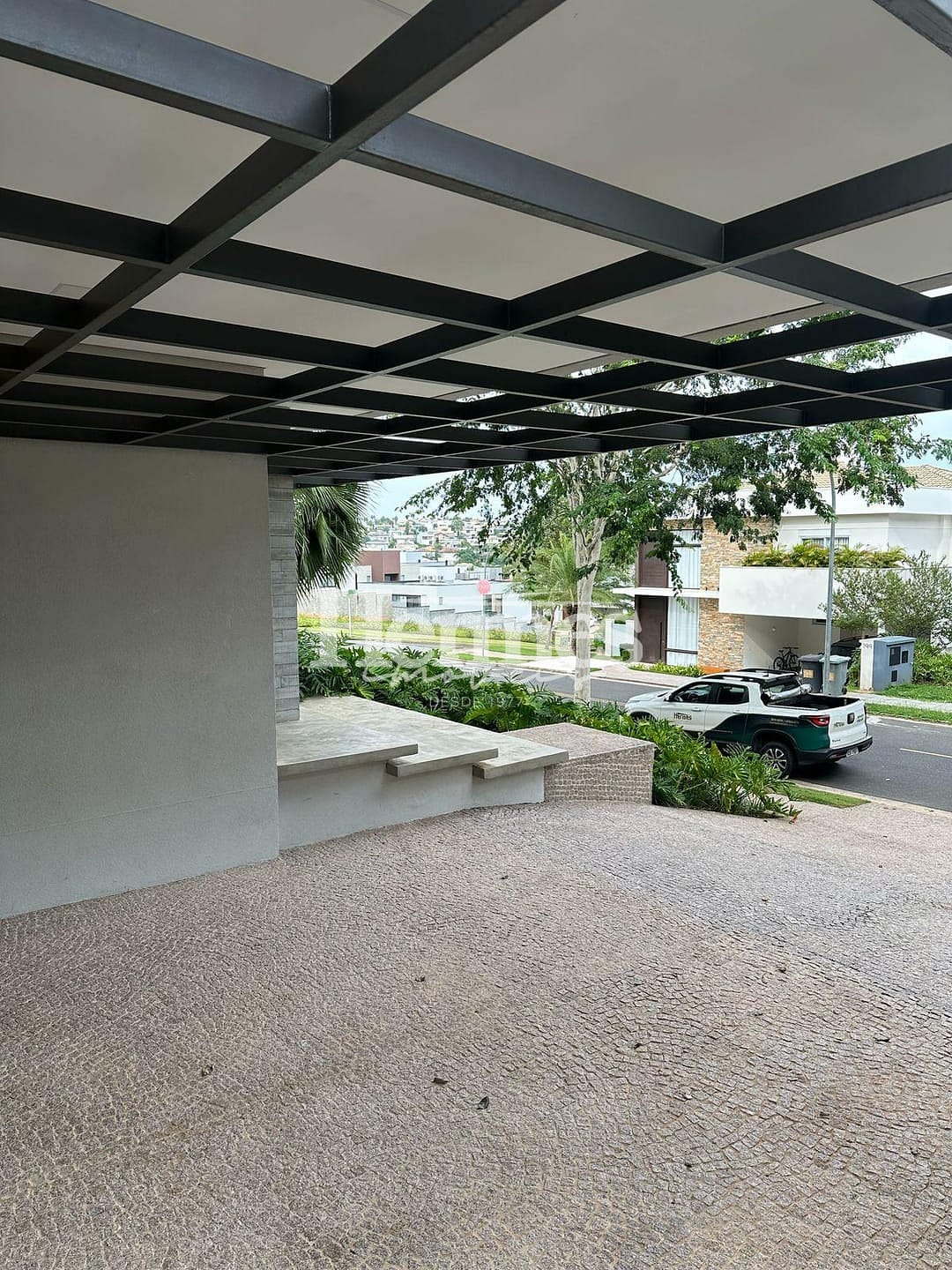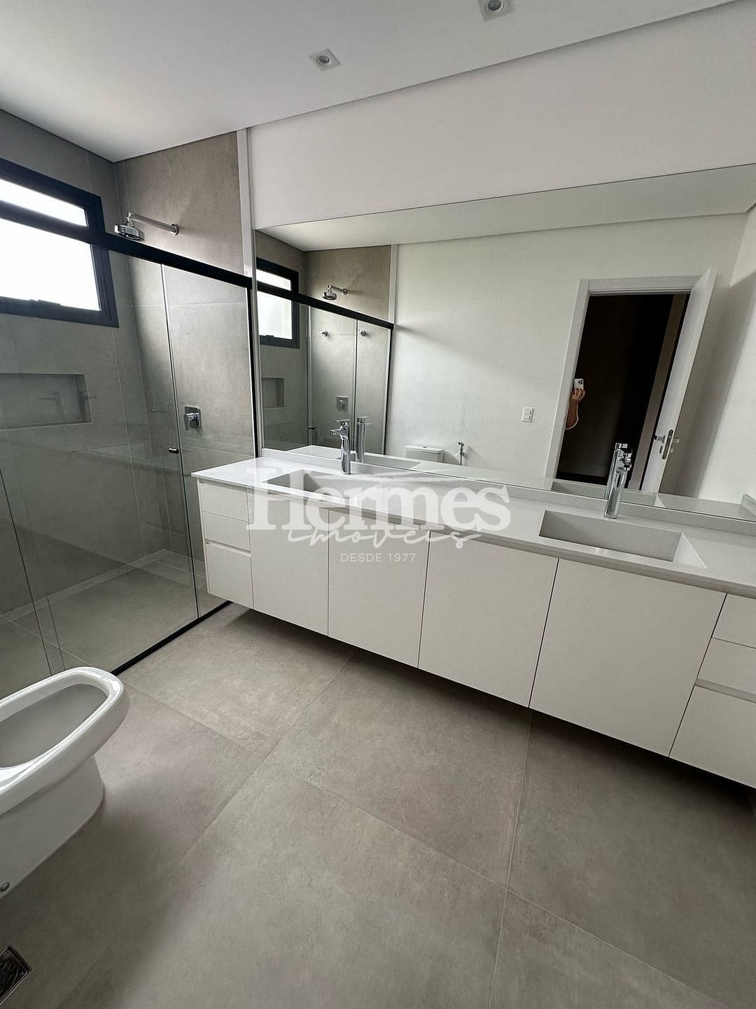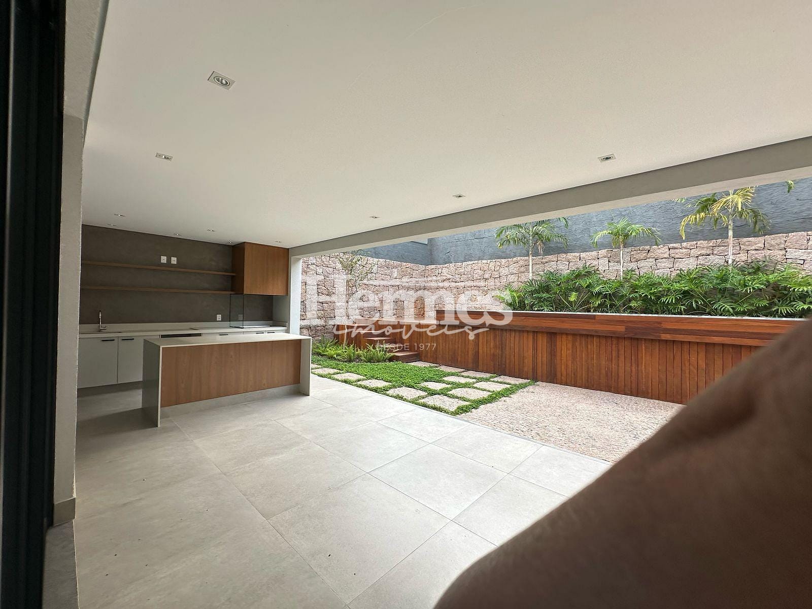 A área térrea possui sala ampla em conceito aberto, lavabo completo, escritório, depósito. A cozinha também integrada com espaço gourmet e área de laser com piscina aquicida. A lavanderia possui entrada independente.
