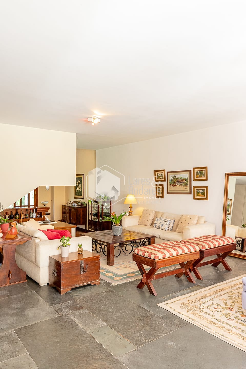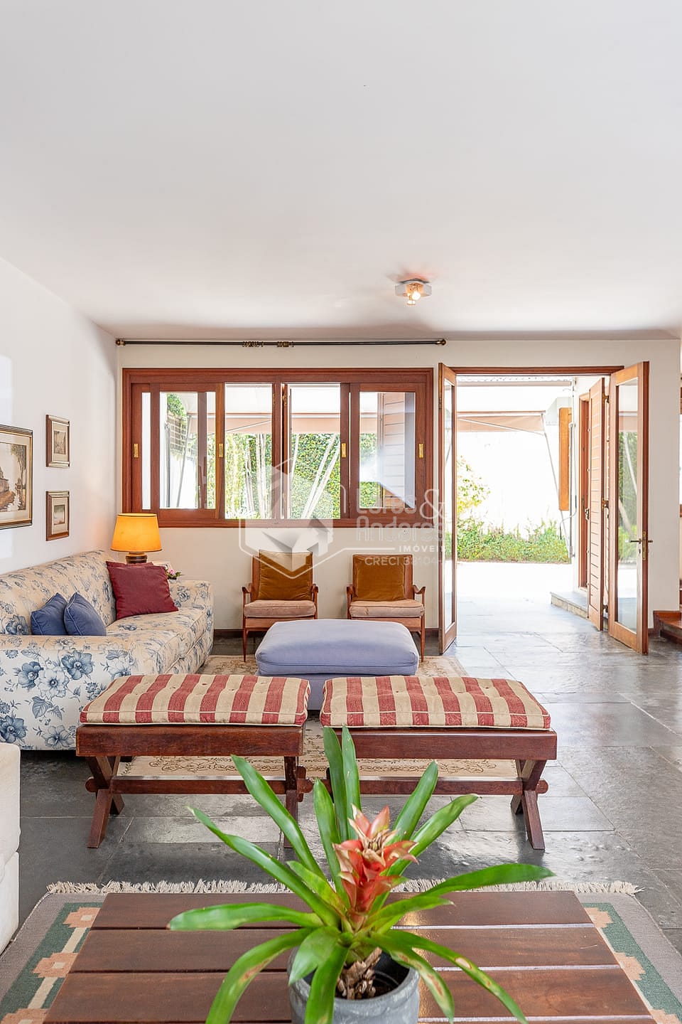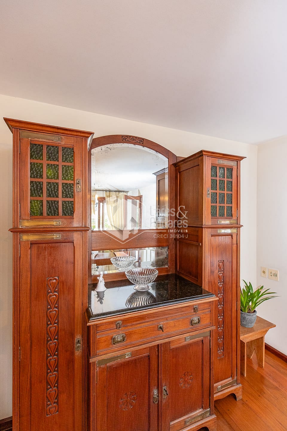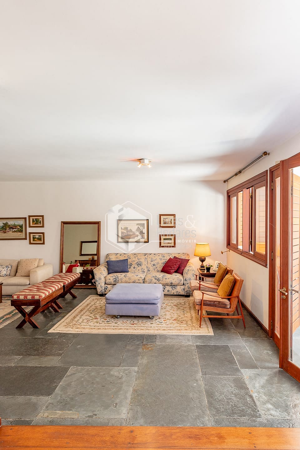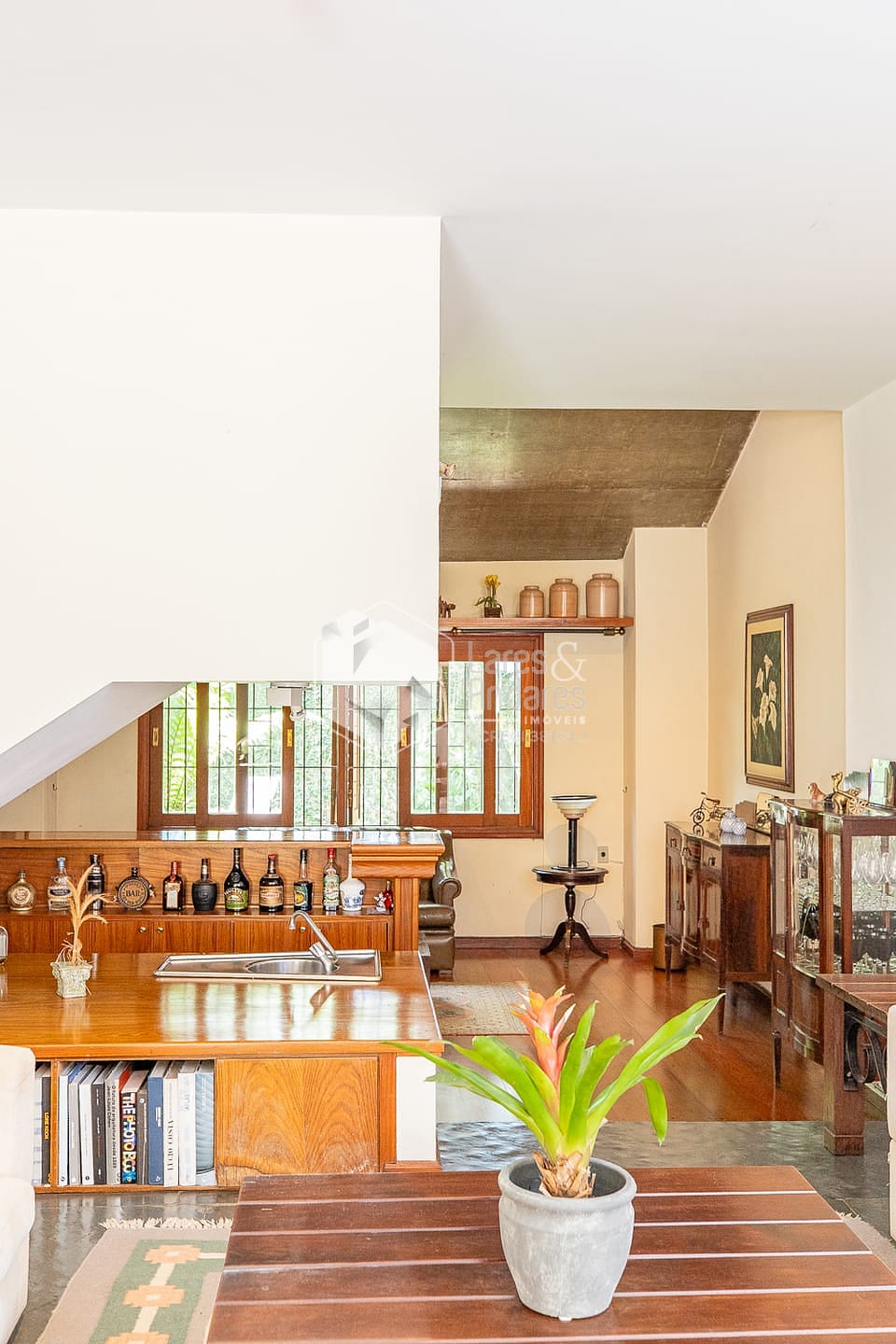 A arquitectura é sem dúvida um dos destaques: A entrada principal está recuada, precedida por um jardim frontal e apresentada por uma árvore lindíssima que embeleza a rua inteira. Uma entrada importante, com pé direito altíssimo, ambientes espaçosos e amplas janelas que enchem a casa de luz e ventilação natural. Um verdadeiro achado para quem pensa em reformar e preservar detalhes essenciais.