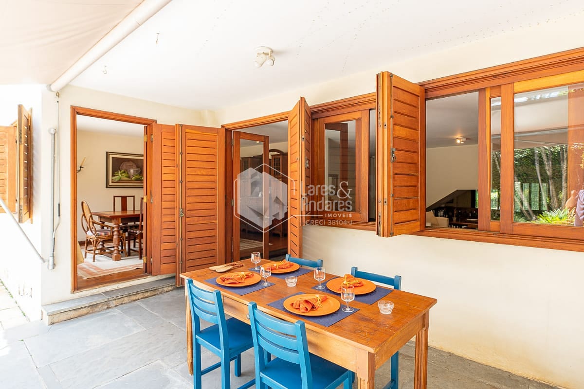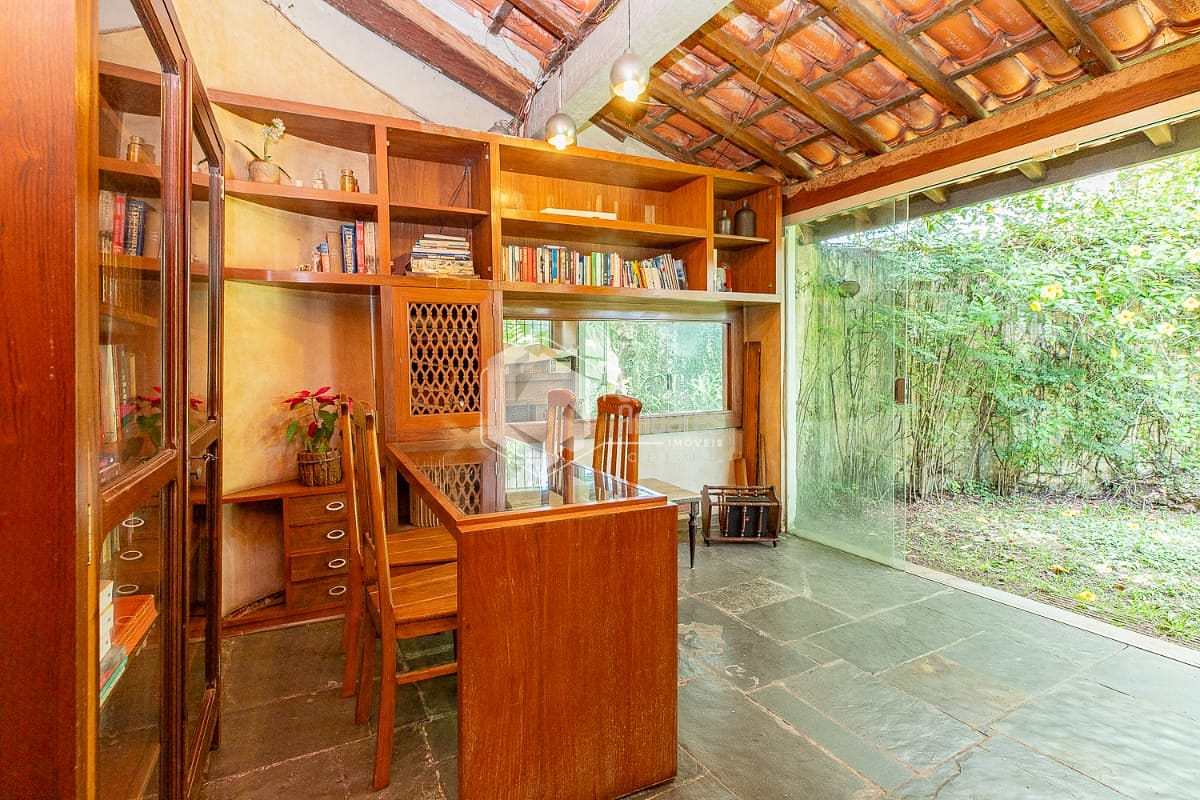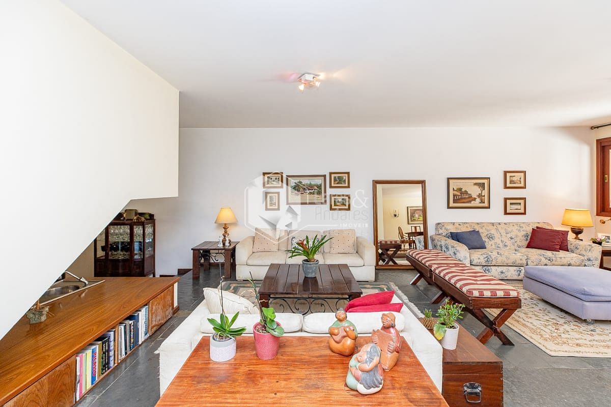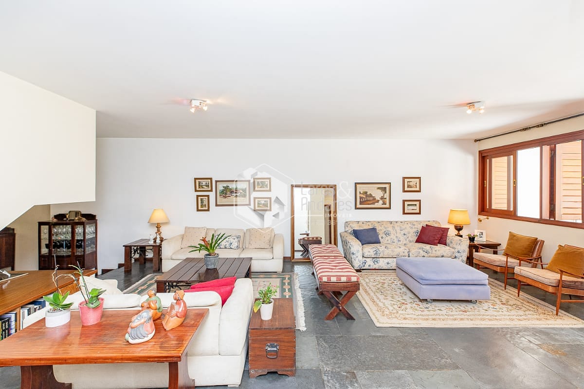 Com 482m 2 de área construída e 489m2 de terreno, a casa tem 4 suítes com closet, tudo em piso de madeira, sala ampla para 2 ambientes, sala de jantar, ambas com vista para o terraço. A cozinha é espaçosa, de formato quadrado, muito iluminada e com uma ampla despensa. Está colada com uma grande área de lavanderia para quem gosta de fazer dela um dos principais ambientes da casa. Além disso, Sala-Bar, lavabo, um escritório com vista para o jardim para inspirar a família toda e uma espaçosa sala de TV coladinha com os quartos. No terraço dos fundos, a área preferida da Fran, dá para fazer uma área gourmet e uma pequena piscina. Ele conecta a casa com o salão de jogos, um espaço que pode ser desde o ateliê mais inspirador até o que sua imaginação possa sonhar. 3 vagas de garagem.