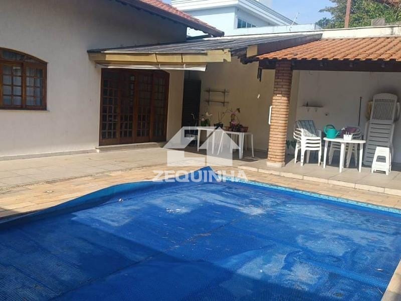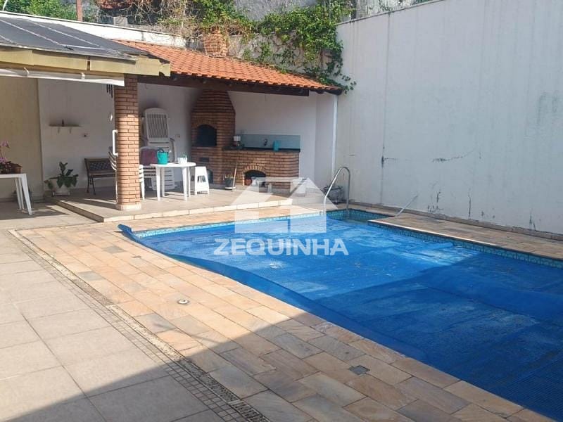 Lindo Sobrado com 3 dormitórios sendo 1 suíte, todos com armários, piso em assoalho de madeira, sala grande com piso de mármore, cozinha com armários, área de serviço, quarto de empregada, banheiro, piscina com cascata, churrasqueira coberta, garagem para até 6 carros com portão automático.