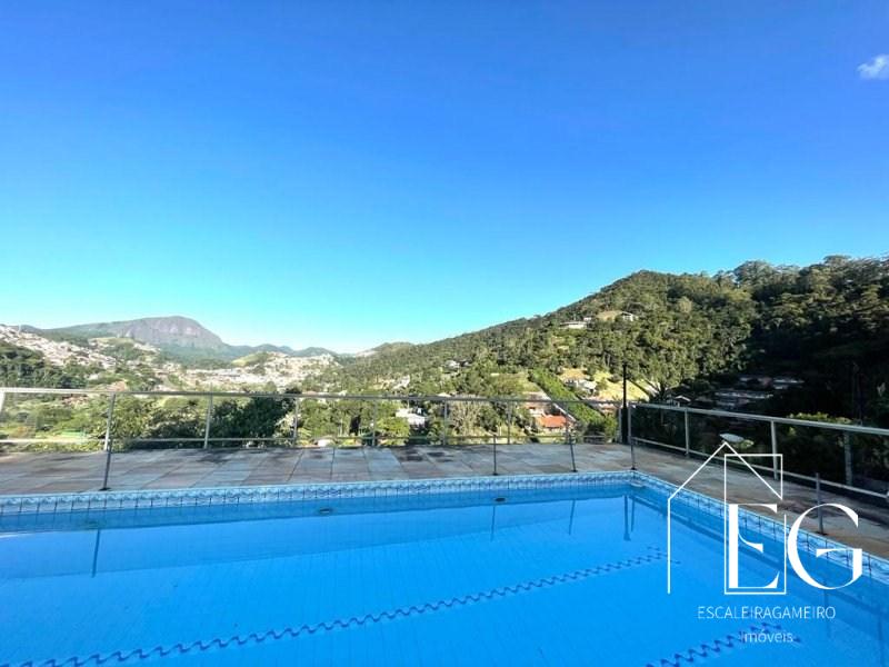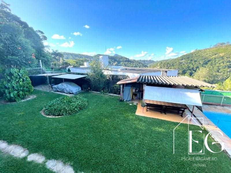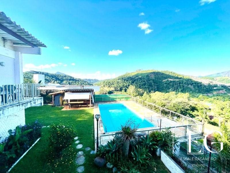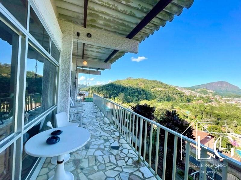 Excelente propriedade a venda em bairro nobre de Teresópolis. O imóvel linear é composto por, amplo salão em 3 ambientes com lareira, varanda com vista livre para as montanhas, 03 quartos sendo 01 suíte com closet e varanda, Banheiro social, Copa cozinha, Área de serviço. Na parte inferior no imóvel temos um enorme salão de festas, Quarto para hóspede, Banheiro social, Lavanderia, 02 quartos para empregados com banheiro. Garagem com 02 vagas cobertas, Quarto para guardados. Na parte externa temos mais 02 vagas para visitantes, Churrasqueira,piscina e um amplo jardim. Mais um amplo terreno com entrada independente. Toda casa com uma vista fantástica!!!! Sol o dia todo.