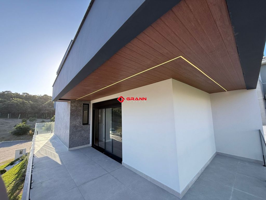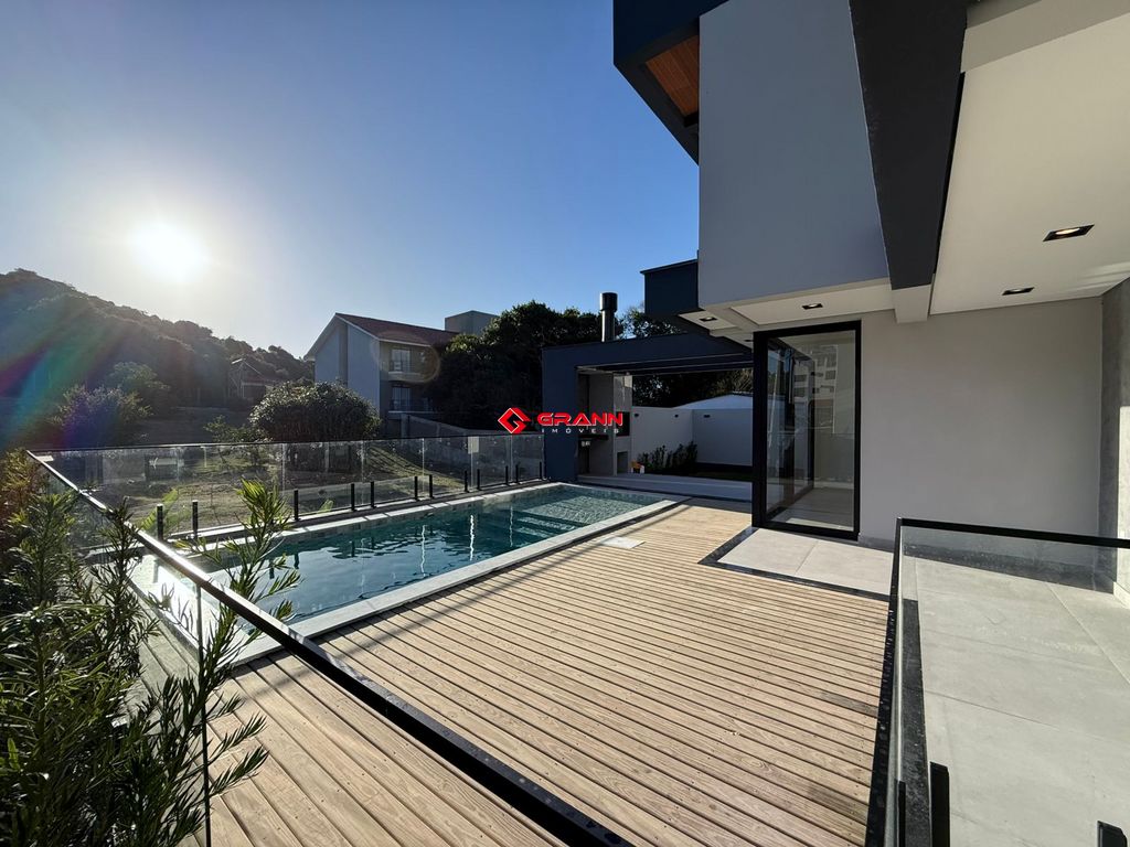 São quatro amplas suítes com piso vinílico, oferecendo aconchego e elegância. A área social foi pensada para receber bem: cozinha integrada à sala de jantar, varanda gourmet, piscina de concreto e um jardim planejado que valoriza o paisagismo e o bem-estar.
