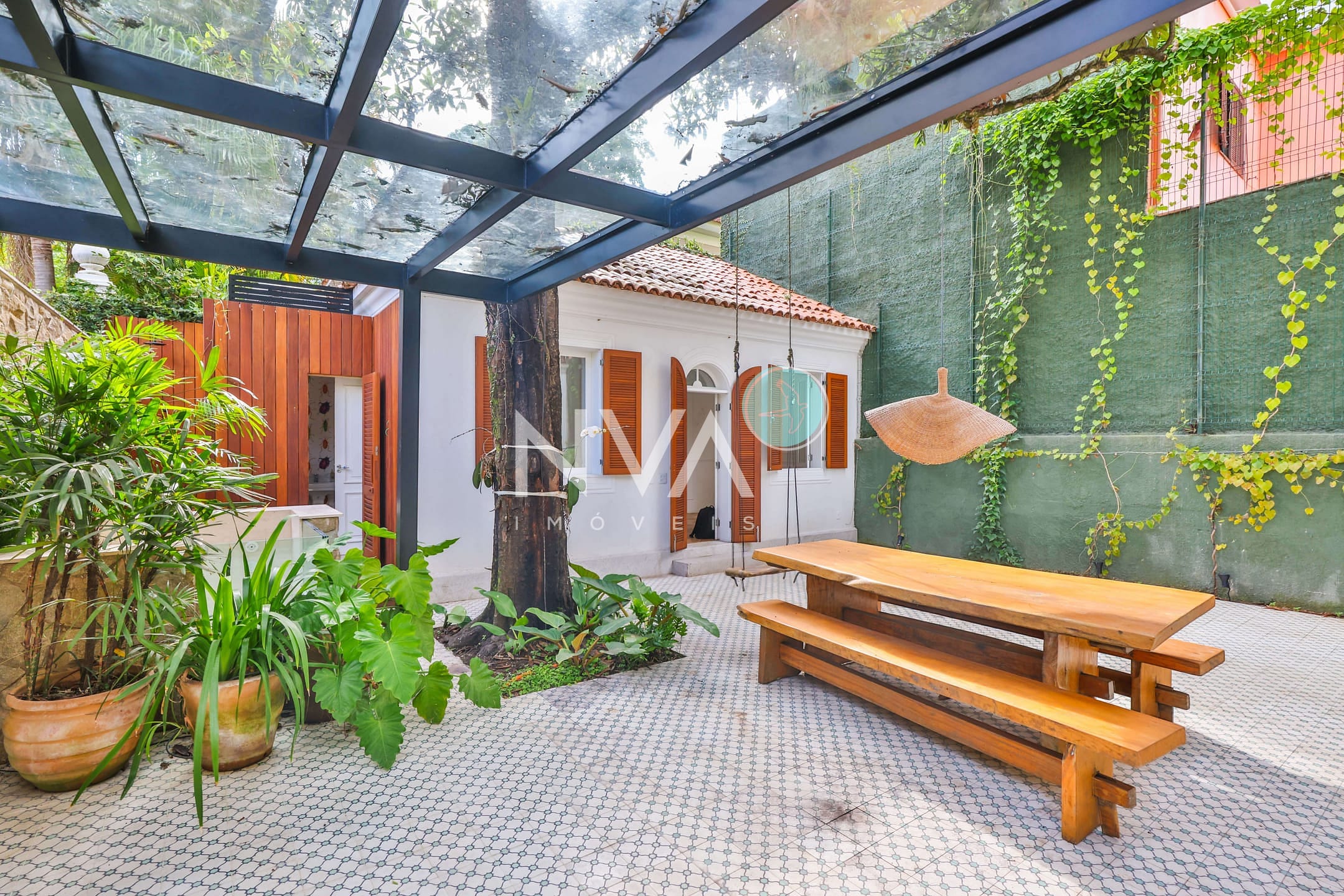 JARDIM BOTÂNICO Um imóvel muito raro, no coração da região mais valorizada do Jardim Botânico. Casa original dos anos 30, completamente reformada, com extremo bom gosto, preservando as características originais. São quatro quartos, sendo duas ótimas suítes, sendo a master com um excelente closet. Um lindo piso percorre todos os cômodos dos quartos. Living muito agradável, com cozinha americana integrada, totalmente equipada. Na área externa, a sensação de se sentir viajando no tempo, com uma atmosfera indescritível. Piso e detalhes da época ajudam a compor o cenário. Espaço gourmet com possibilidades amplas para novas composições, contando ainda com Jacuzzi. Sala belíssima na área externa, com banheiro, podendo se transformar em escritório, estúdio, ou mesmo uma terceira suíte. No terraço superior, perfeito para receber os amigos, tomar um vinho apreciando uma vista deslumbrante para o Cristo Redentor. Garagem, lavanderia e ainda uma dependência completa. Casa monitorada 24 horas pela segurança da região. N508