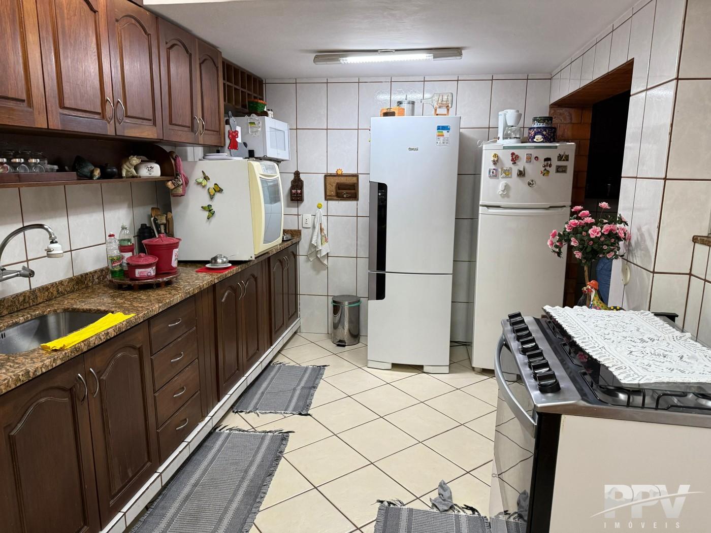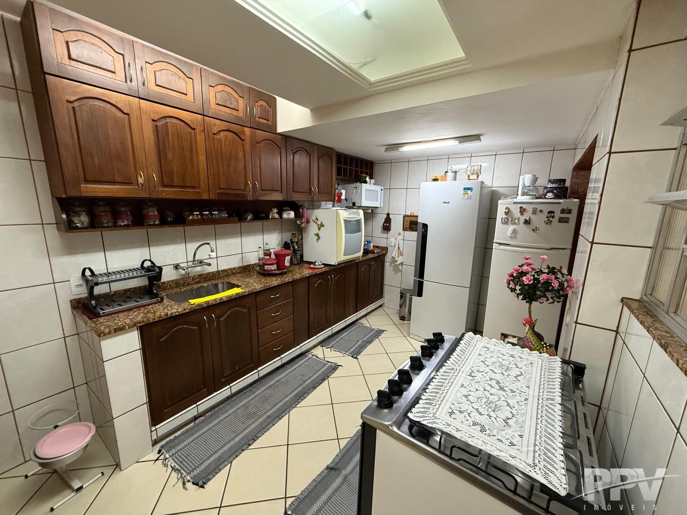 Ampla cozinha com armários em madeira