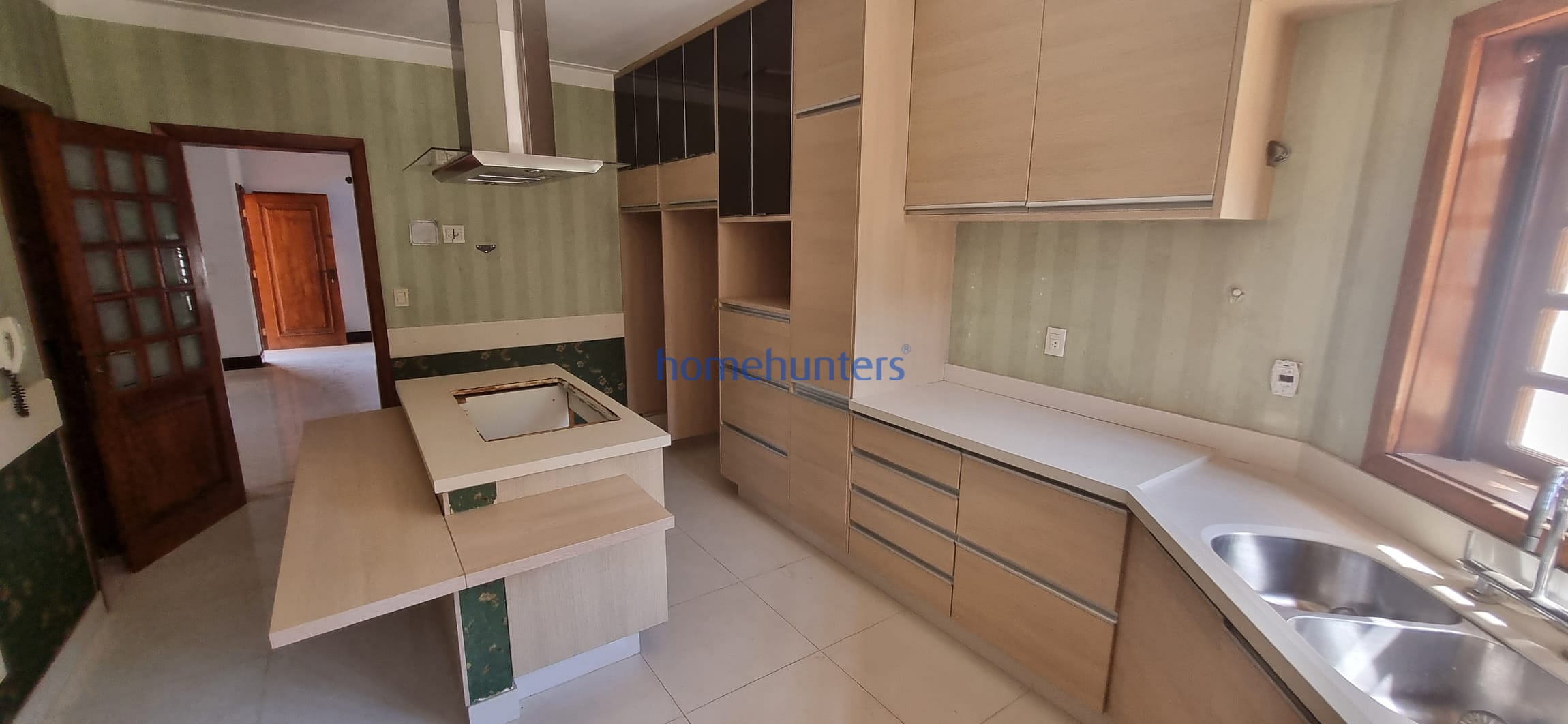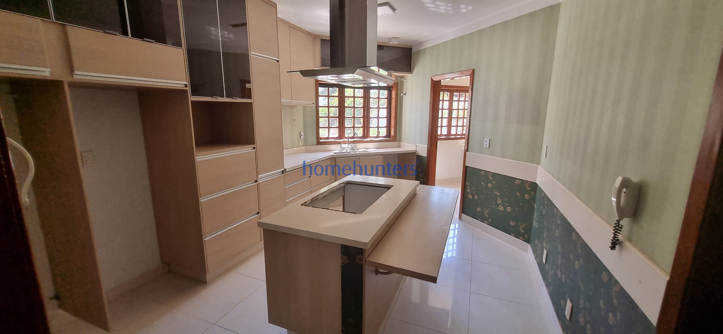 Cozinha planejada com ilha central e despensa