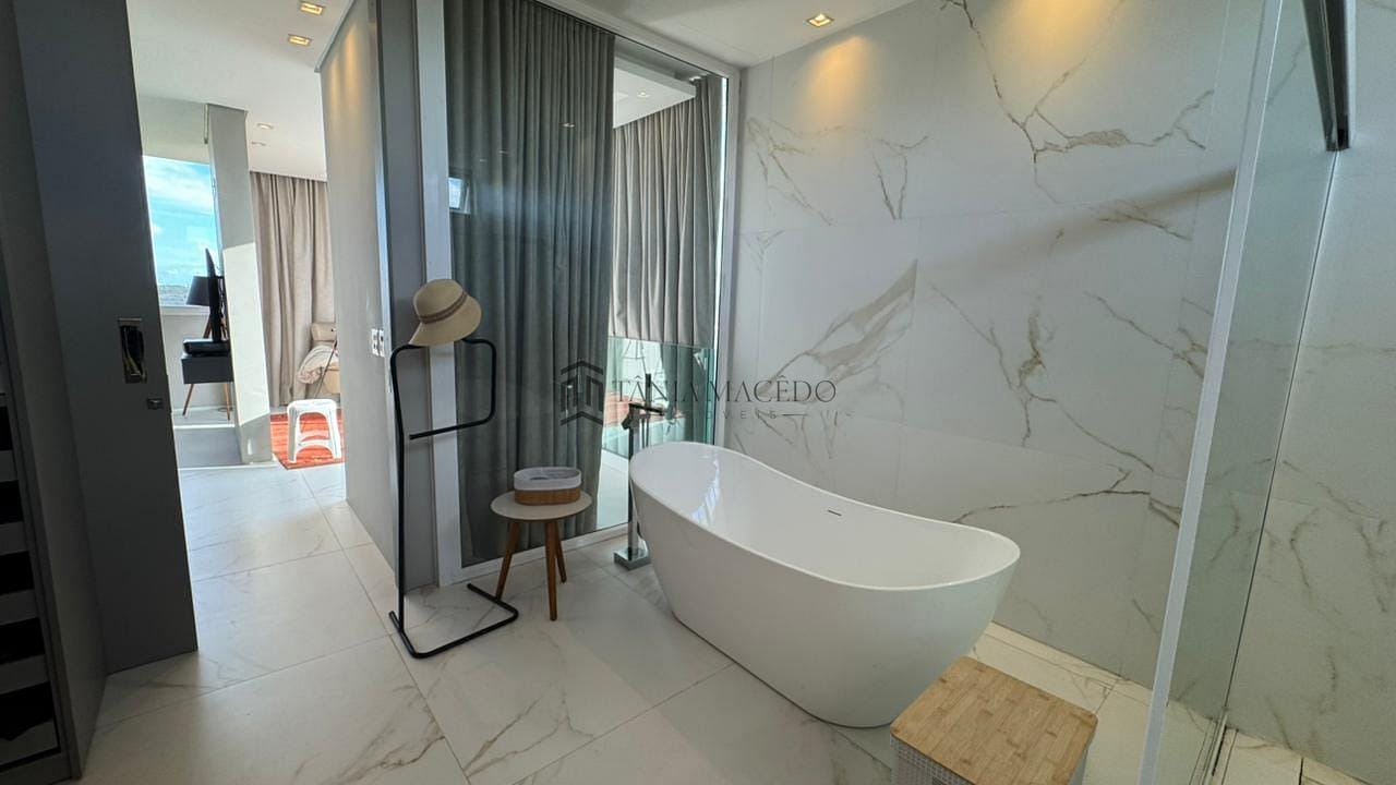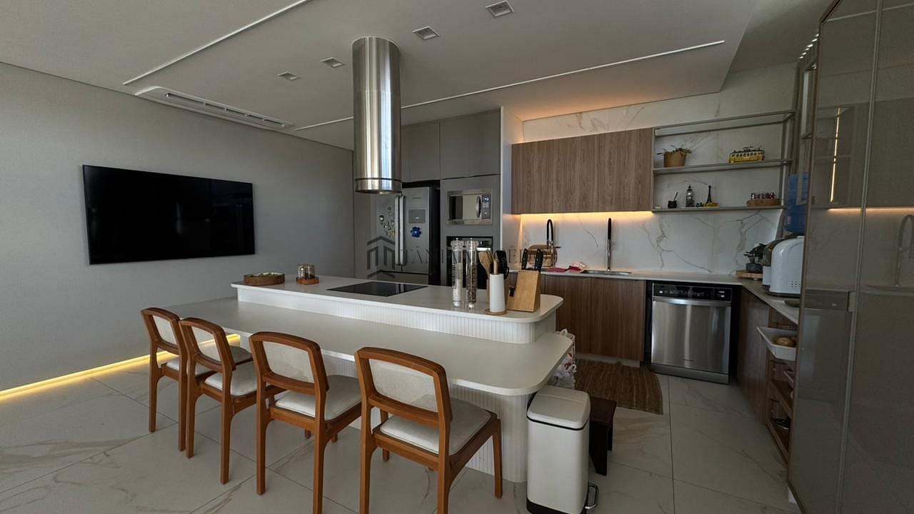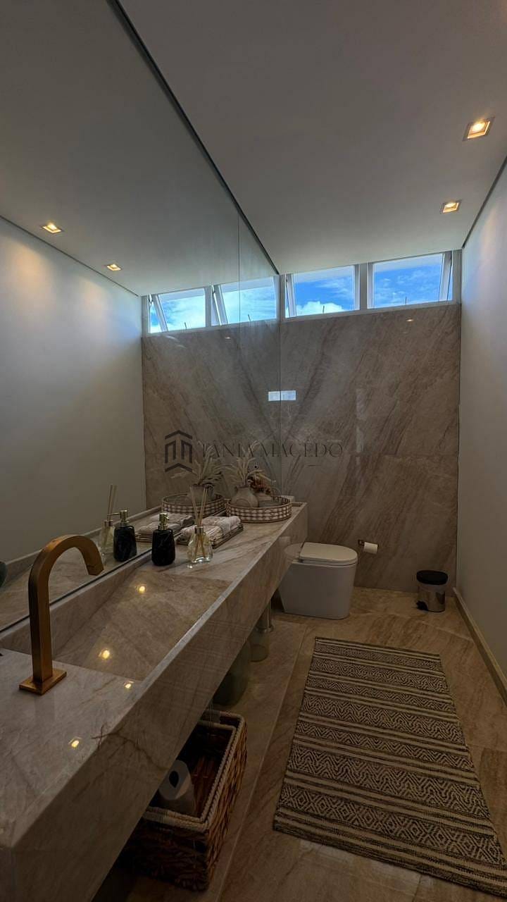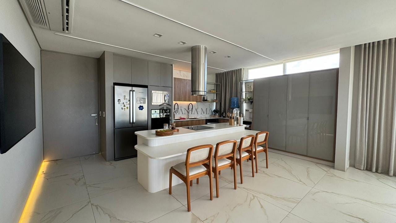 Esta casa maravilhosa, no Alphaville Pe 1 alto padrão, com 560m² de área útil. Conta com uma suíte master com 72,60m², closet, banheira, duas cozinhas equipadas. Uma delas no espaço gourmet. Esquadria toda revestida em PVC, Vidros isolante térmico e anti-ruído. Área gourmet completíssima, com vista para uma reserva ecológica. Usina solar suficiente para 3 residências. Elevador!
