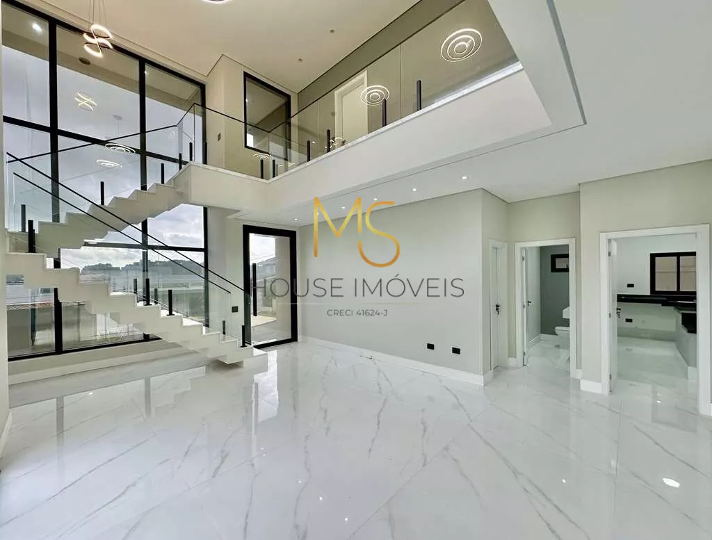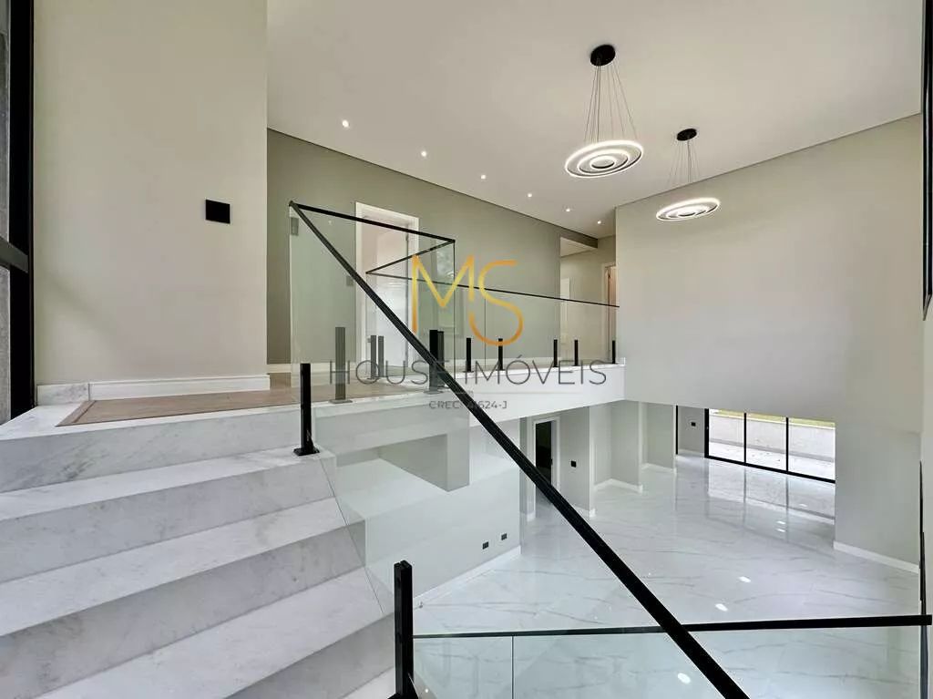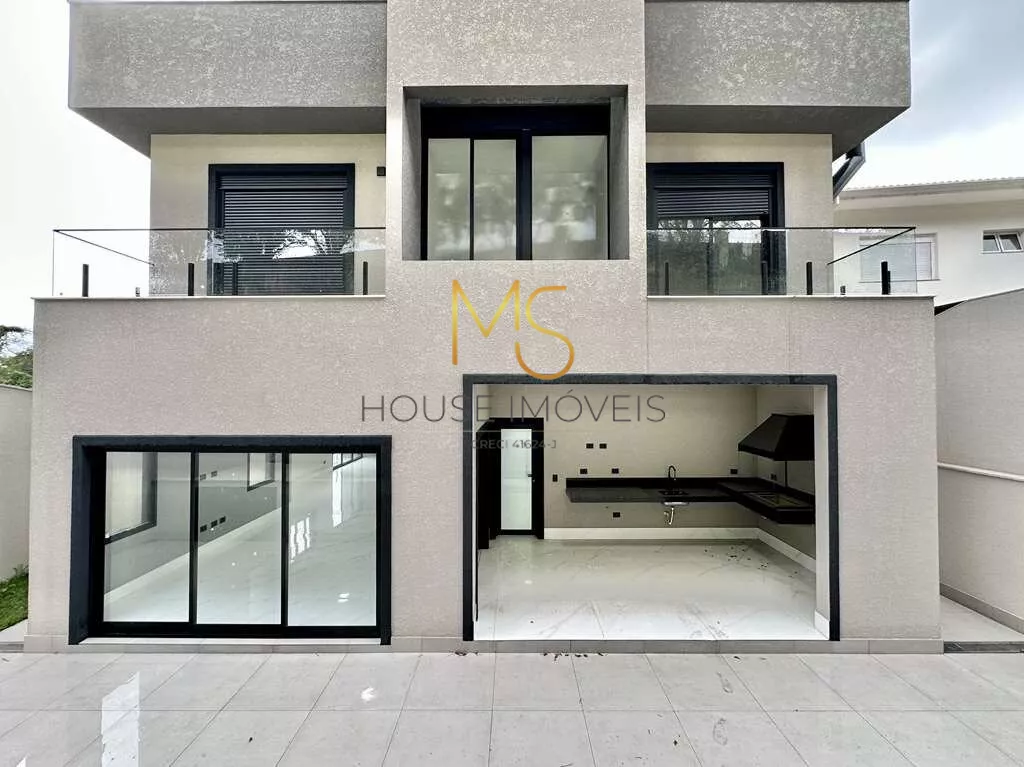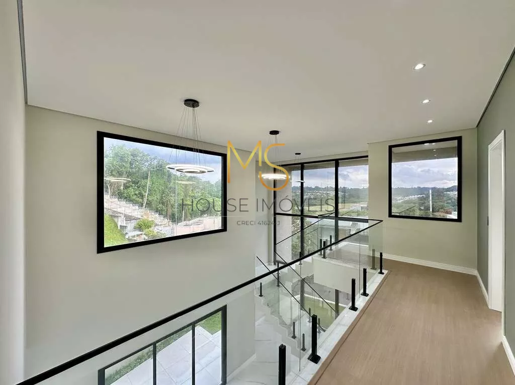 Casa moderna em condomínio de alto padrãoEsta residência moderna e elegante está situada em um charmoso condomínio de alto padrão, estrategicamente localizado no eixo da Estrada Fernando Nobre (Km 28,5 da Rodovia Raposo Tavares), próxima ao renomado São Fernando Golf Club, ao prestigiado Colégio Sidarta e ao sereno Templo Zulai.A casa destaca-se por sua arquitetura contemporânea, oferecendo espaços amplos e uma excelente iluminação natural, com o uso abundante de vidros. A entrada principal é adornada por uma porta social equipada com fechadura eletrônica digital.O living impressiona com seus três ambientes integrados, pé-direito duplo e piso em porcelanato. Um lavabo elegante complementa o ambiente.A cozinha, totalmente equipada, possui uma ilha central e tampos de granito preto, além de um depurador em inox. A varanda gourmet é um convite ao entretenimento, com uma grande bancada, pia e churrasqueira.A escada que leva ao andar superior é equipada com guarda-corpo em vidro, conferindo segurança e estilo. No andar superior, encontram-se quatro suítes, três delas com closet e sacadas com guarda-corpo em vidro. Toda a área íntima oferece conforto com piso vinílico.Os banheiros são revestidos em porcelanato, com nichos nos boxes e pias com cubas sobrepostas e torneiras monocomando. O banheiro da suíte master é um luxo, com duas duchas.Iluminação totalmente em LED e sistema hidráulico preparado para receber aquecimento central de água.A área de lazer nos fundos é um verdadeiro refúgio, apresentando um quintal espaçoso e um amplo gramado, preparado para a instalação de uma piscina. Um corredor lateral oferece acesso direto à área de lazer.A garagem acomoda confortavelmente duas vagas cobertas e duas descobertas.