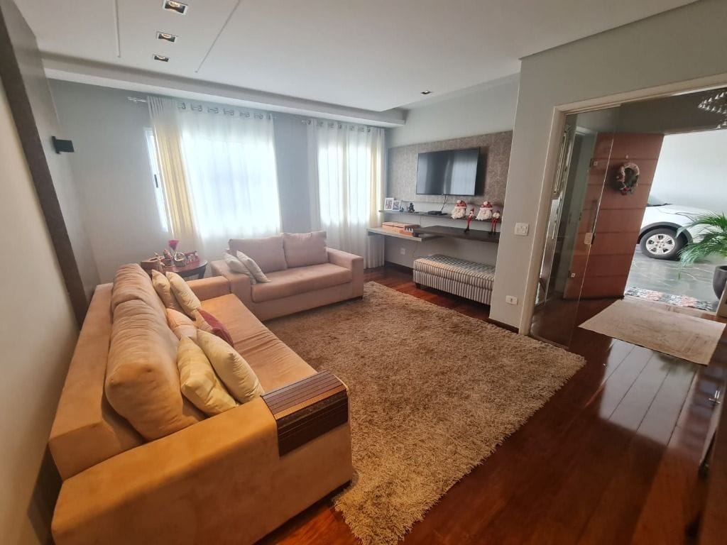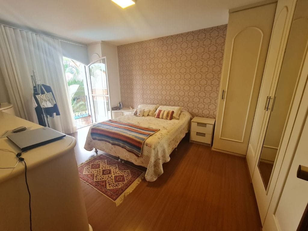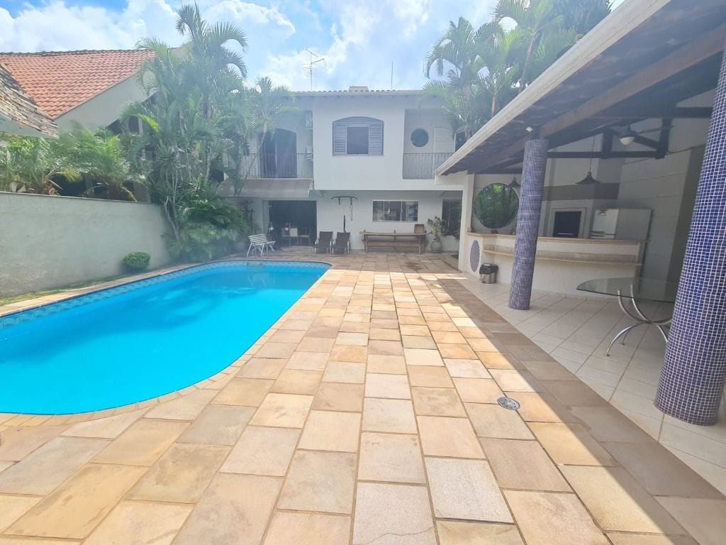 Sobrado com 04 dormitórios, sendo 01 suíte, dependência de empregados com banheiro, piscina, sala de estar, sala de tv, varanda gourmet com churrasqueira e aquecimento solar.