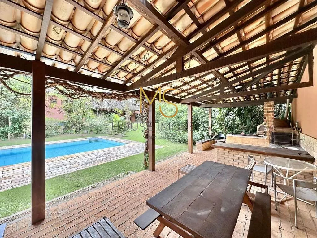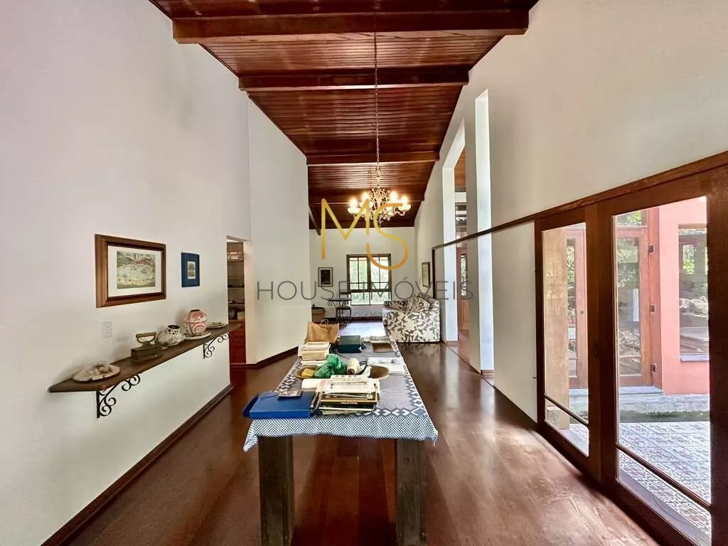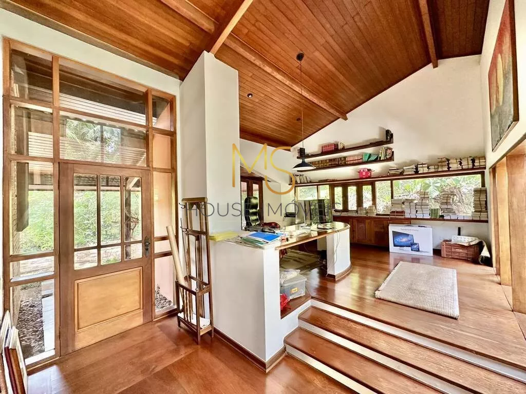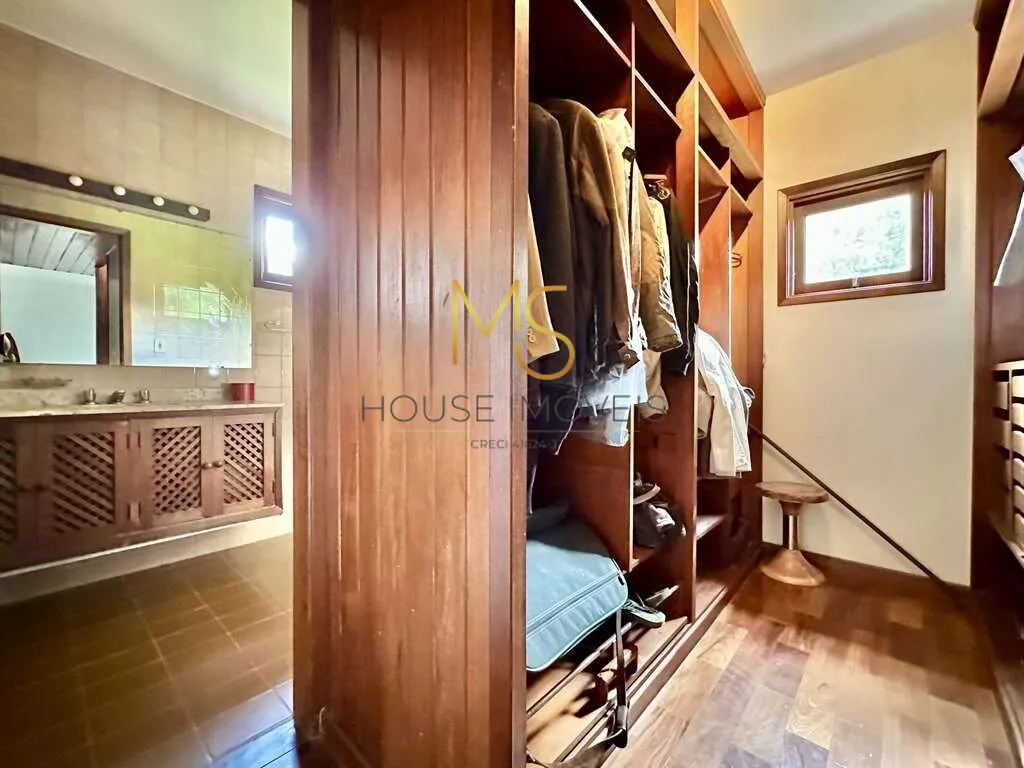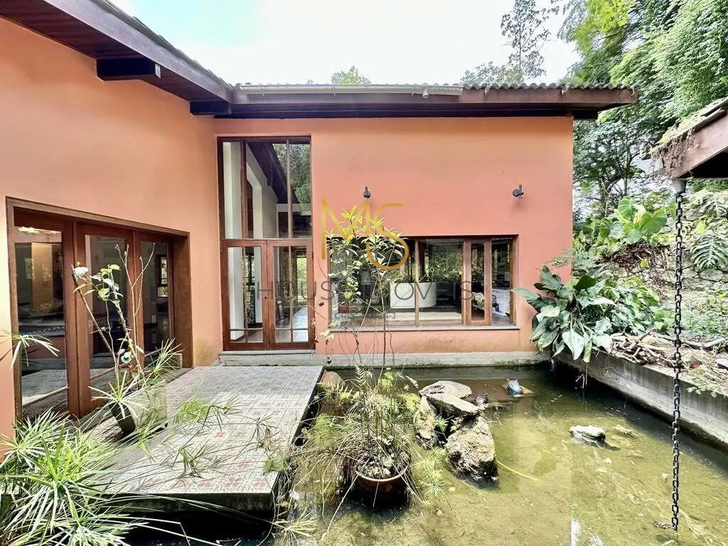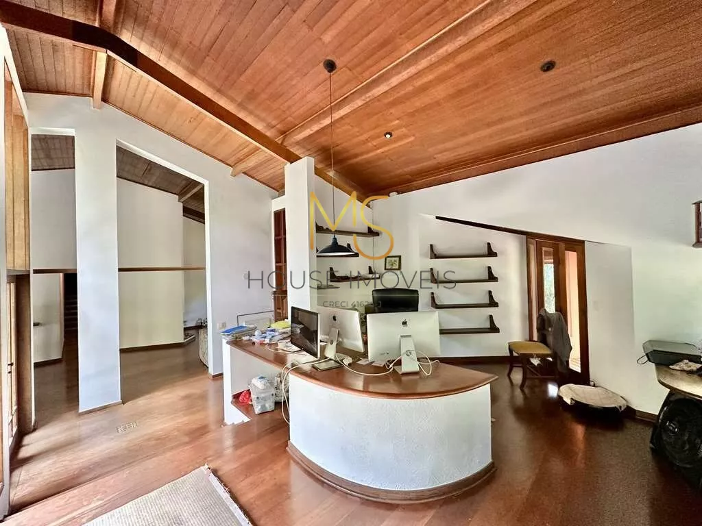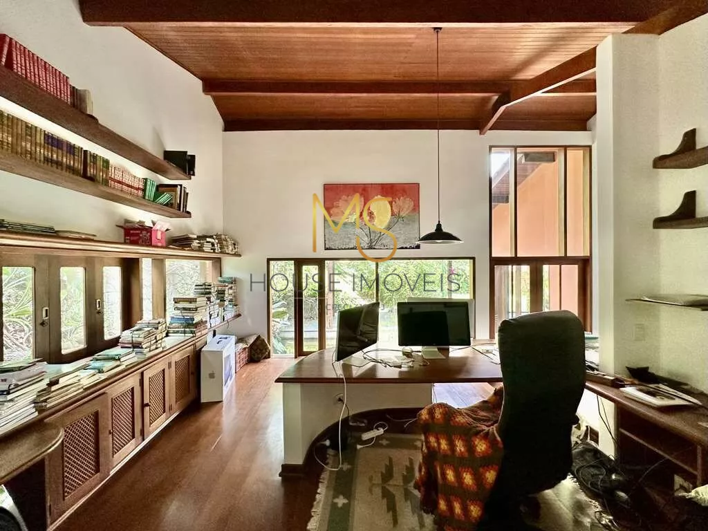 Casa à venda com 4 dormitórios, sendo 3 com ventiladores, 2 com armários e 1 suíte com closet.Jardim com paisagismo formado, 3 acessos: social, garagem, lazer e serviço, escritório.Lavabo, Sala de TV, Living envidraçado integrado para 4 ambientes, voltados para varanda com laguinho e lazer com jardim, piscina e anexo gourmet. Jantar, estar, lareira e TV, escritório 1 com bancadas e vista para o lago, estantes e gabinetes. Anexo gourmet com churrasqueira, defumador, fogão à lenha, forno de pizza, bancada e balcão, Piscina de alvenaria iluminada com escada interna, solarium e casa de máquinas, sauna seca. Área de serviço aberta ensolarada e lavanderia fechada com tanque e depósito. Garagem para 4 vagas, sendo 2 cobertas.agende sua visita