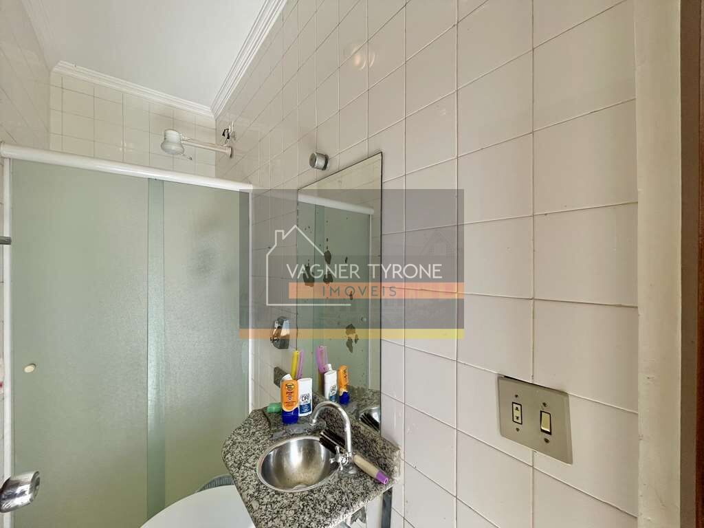 Todos os banheiros com tampos em mármore, espelho e box de vidro.