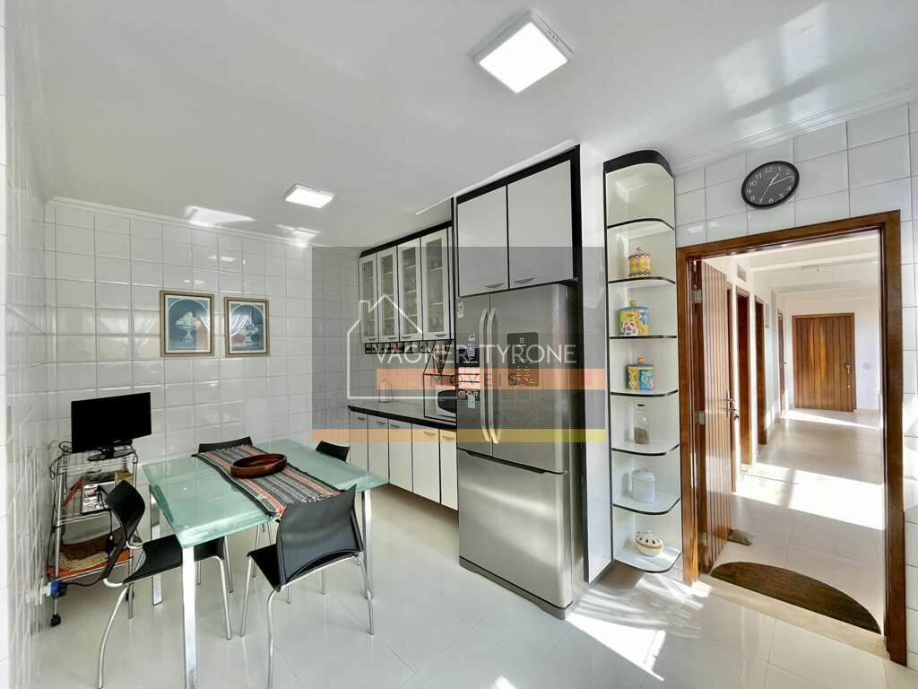 Copa Cozinha e Serviços•Copa/cozinha integrada, repleta de armários planejados, bancada, pia e despensa.
