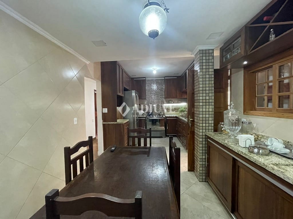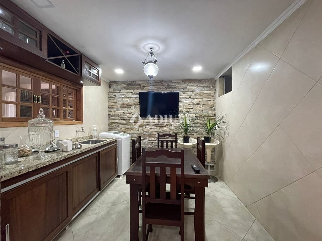 Casa próximo ao comércio local, sala L em três ambientes, banheiro social, dois quartos sendo uma suite, copa e cozinha com armários planejados, área de serviço, dependência de empregada. No segundo andar da casa espaço para 3 quartos e dois banheiros, espaço com 150 m. falta terminar a obra. Casa de hospedes com sala, quarto, cozinha e banheiro social. Garagem coberta para 3 carros.