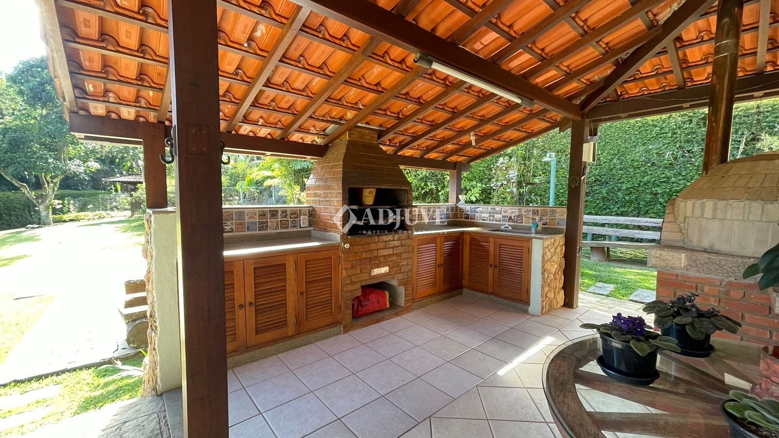Na garagem coberta para 4 quartos, 2 depósitos, banheiro de serviço. Canil. Casa conta com 14 placas solares para aquecimento de água, Horta e árvores frutíferas diversas.