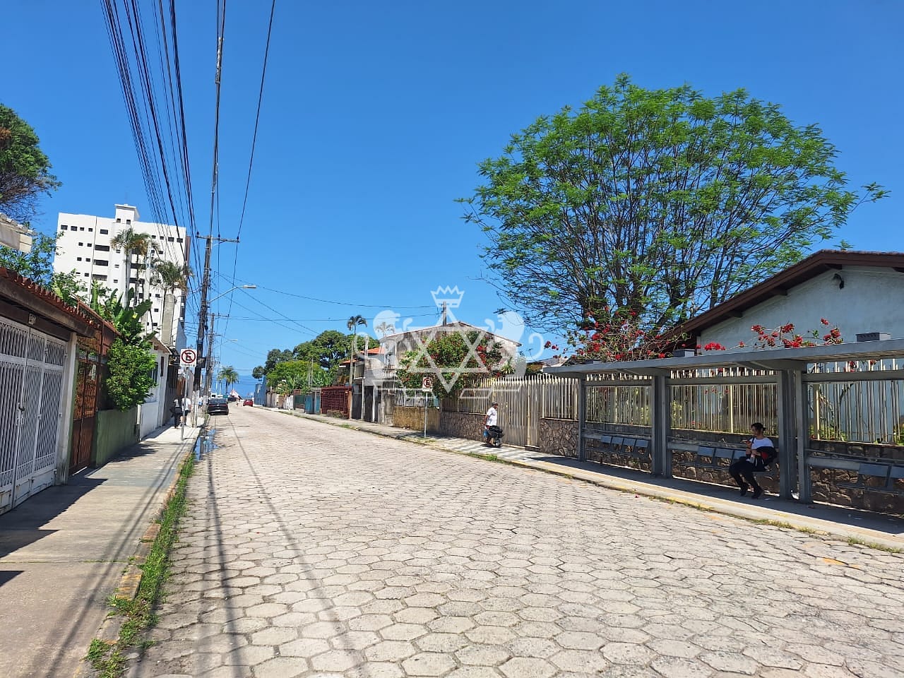 De frente para duas ruas.