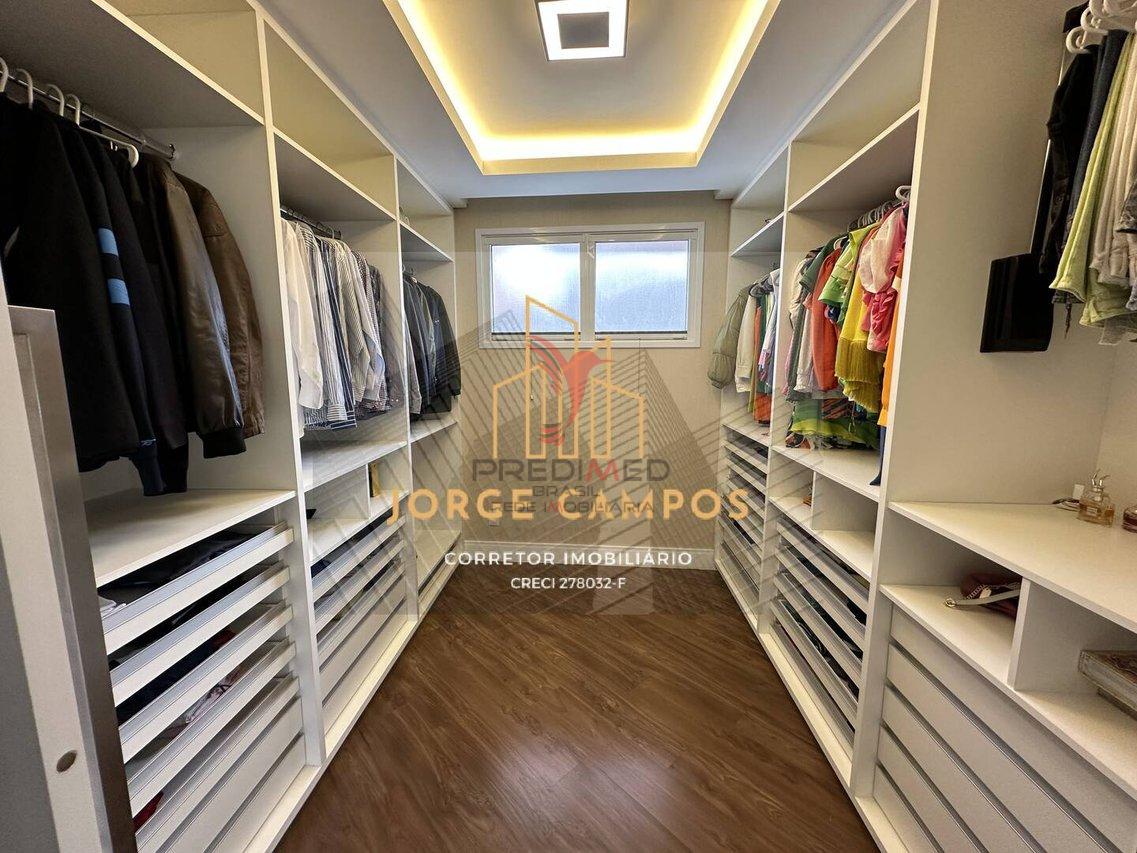 • Ampla Sala de Estar em conceito aberto• Ar Condicionado• Chapeleira• Home Theather• 03 suítes com armários planejados• Escritório reversível para quarto • Cozinha Planejada com Bancada e Pia dupla• Rouparia• Lavabo• Hobby BoxGaragem cobertas para 3 carros com Gabinete para manutenção de automóvel com calibrador de pneus, lavadora de alta pressão, espaço para instalação de alimentação para carro elétrico e saída de águaA área de serviço possui uma ampla suíte, ampla área para lavar/passar roupas e um quarto anexo que pode ser usado como um espaço para hobbies ou um escritório anexo