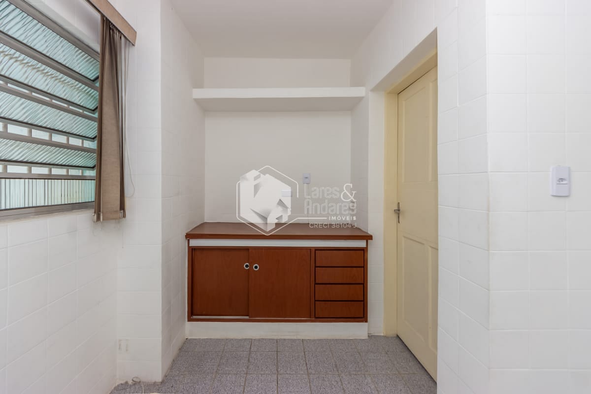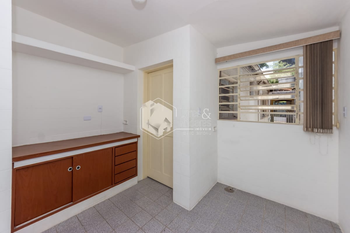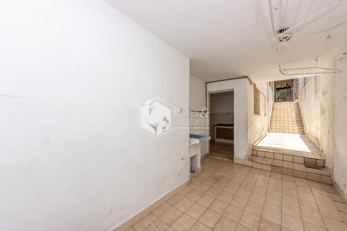 Descendo pela escada externa, o pavimento inferior revela uma segunda residência, perfeita para quem busca independência entre os moradores, receber familiares ou até configurar um escritório. O andar conta com cozinha ampla, área de serviço, banheiro e um quarto espaçoso, criando um ambiente totalmente funcional e privativo.